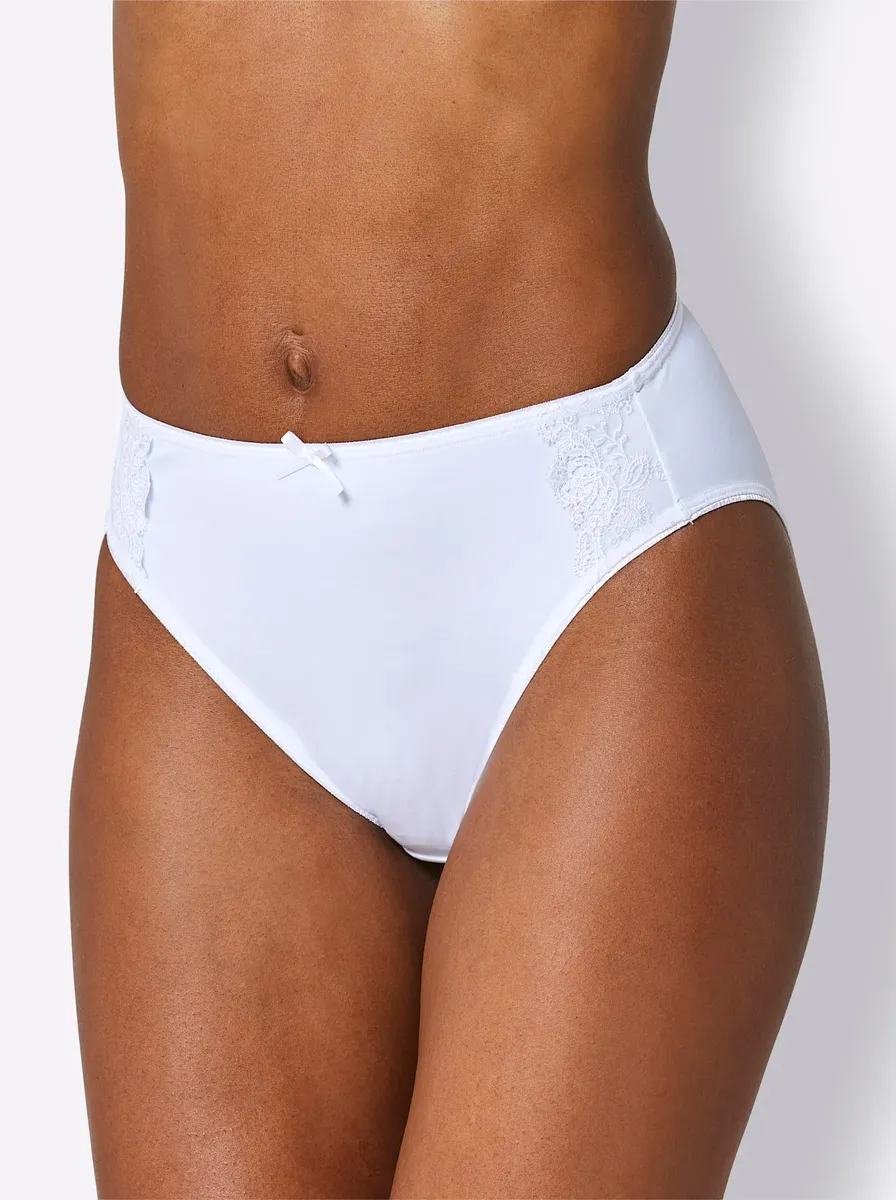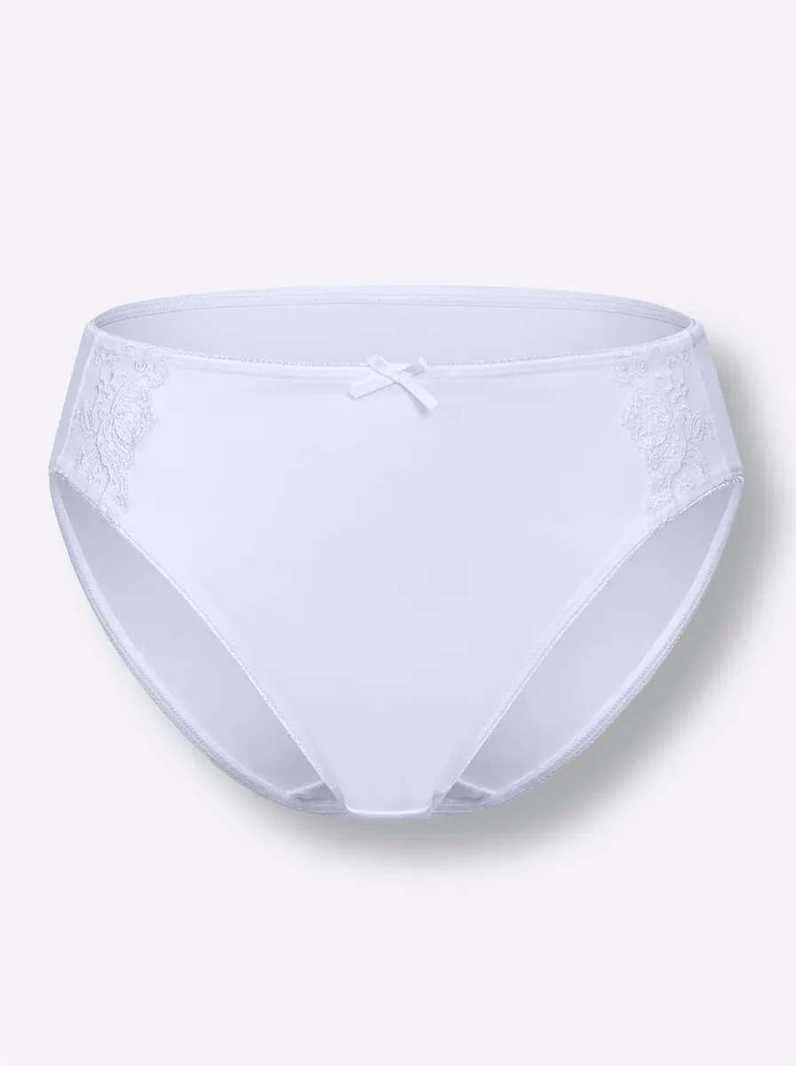 В двойной упаковке: трусики-бикини из уошпура с декоративной вышивкой кружевом и декоративными бантиками спереди. Хлопковая ластовица. 86% полиамид, 14% эластан.