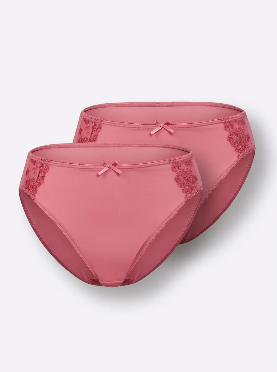В двойной упаковке: трусики-бикини из уошпура с декоративной вышивкой кружевом и декоративными бантиками спереди. Хлопковая ластовица. 86% полиамид, 14% эластан.