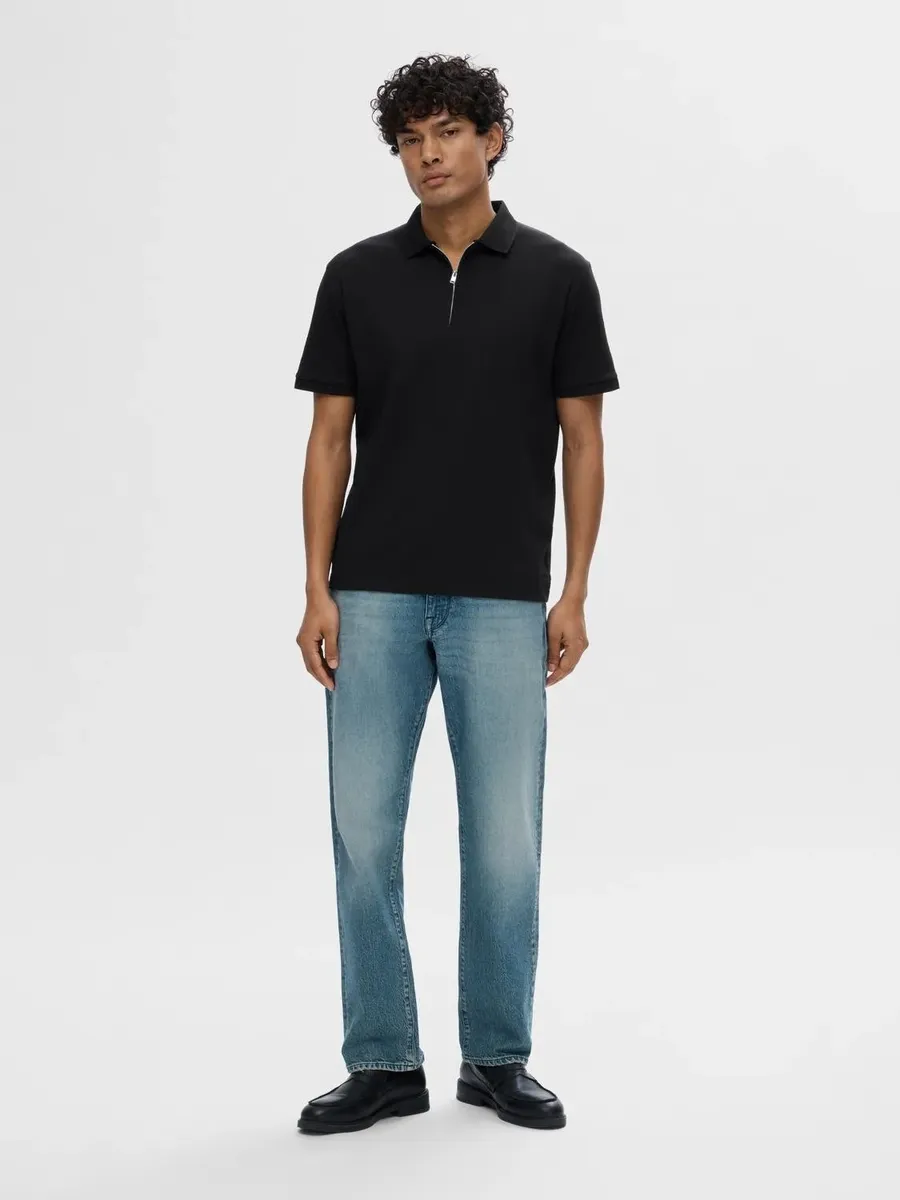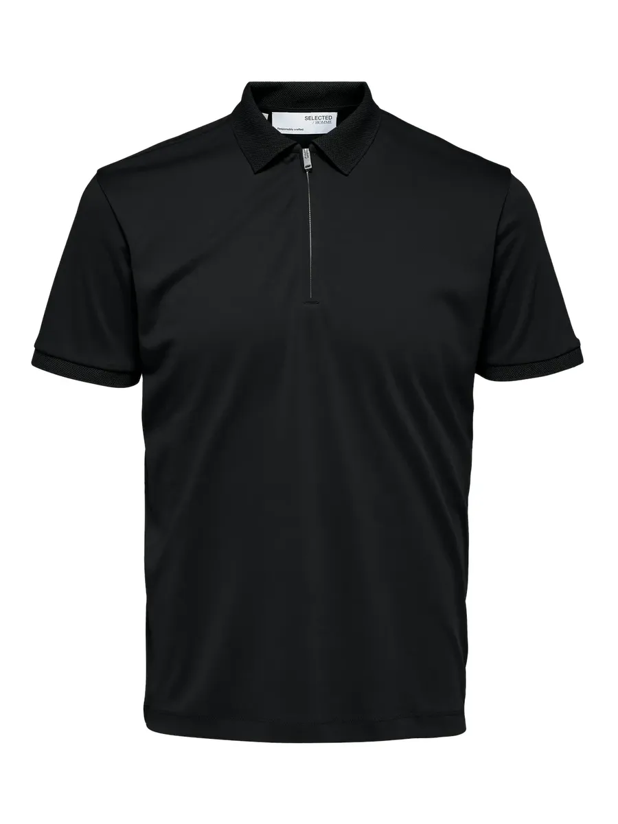 Рубашка-поло SELECTED HOMME "SLHFAVE ZIP SS POLO NOOS", черный