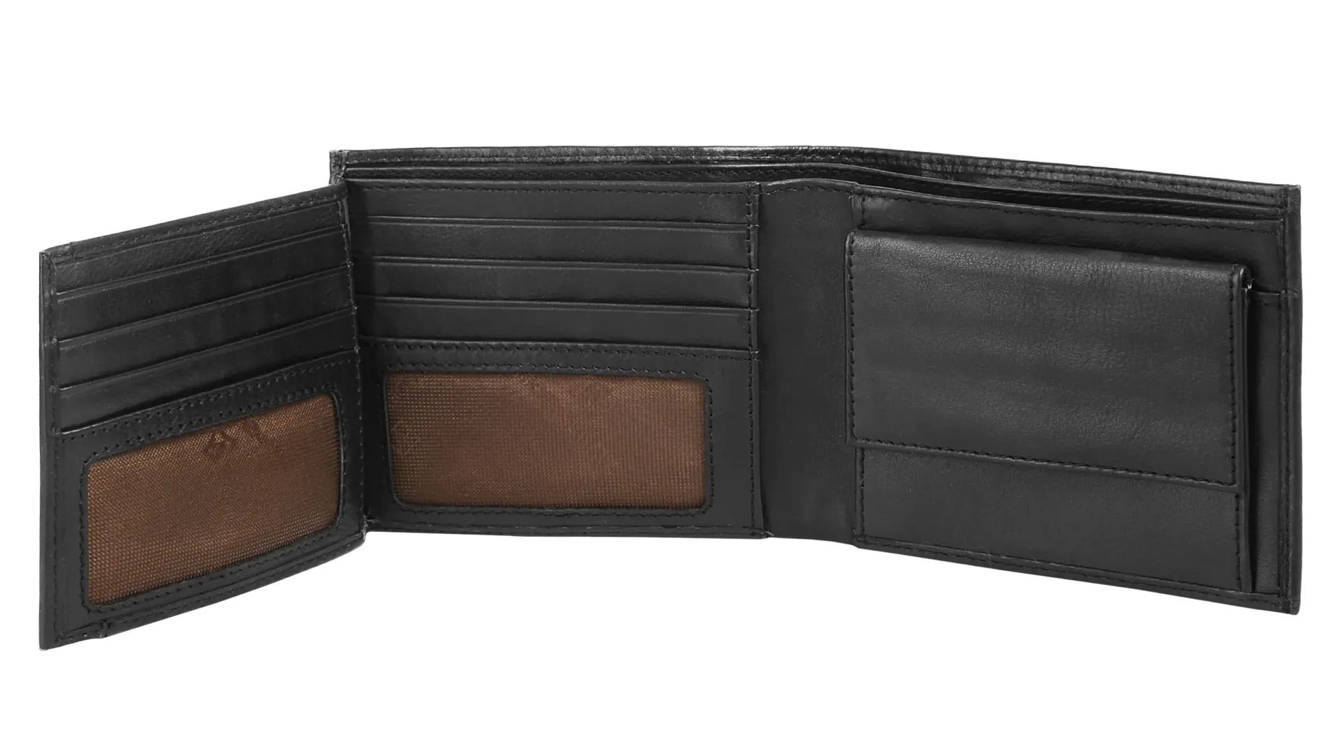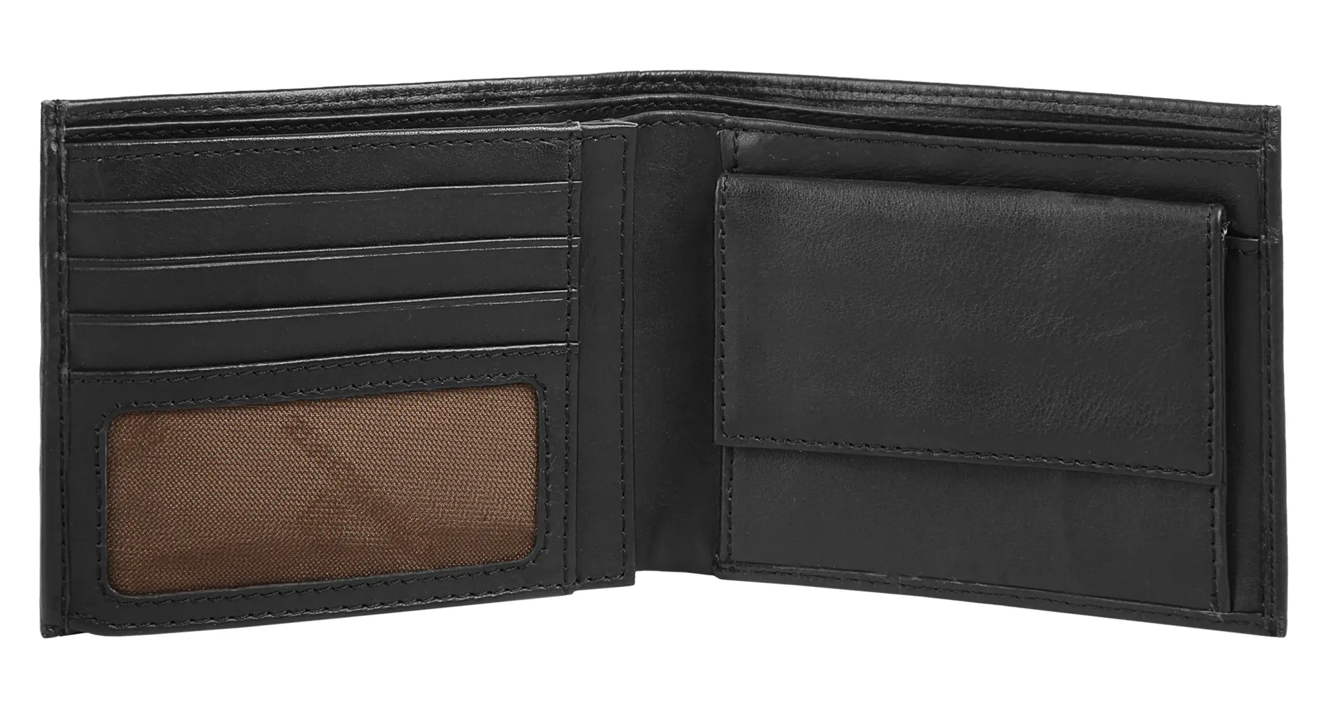 9 отделений для карт, 4 отделения для мелочей, 2 отделения для купюр и отделение для монет.