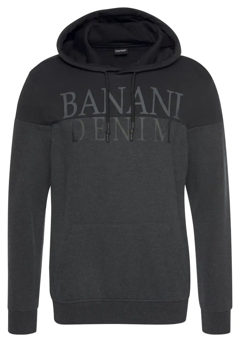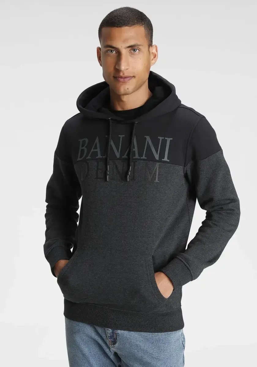 Комбинированная мужская толстовка с капюшоном от Bruno Banani. С обычным широким вырезом. Рукава длинные. Есть крутой принт. Мягкая смесь хлопка делает верх особенно комфортным.