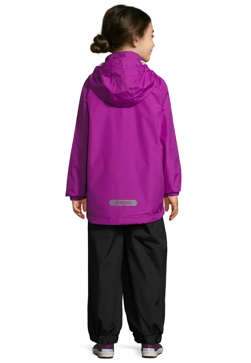 Делает дождливые дни лучше! Разработан под девизом «нет плохой погоды, есть неправильная одежда». В дышащем детском дождевике от ZIGZAG вы выдержите любую непогоду. Удобный детский крой и шикарный простой дизайн в ярких цветах легко сочетаются. Дождевик также можно носить по дороге в школу в качестве защиты поверх обычной детской одежды. Комплект оснащен водяным столбом высотой 10 000 мм. Кроме того, все швы проварены скотчем и поэтому абсолютно водонепроницаемы. Трехслойная система превосходно пропускает воздух, сохраняет тепло и защищает от ветра. Вы можете носить комплект как в теплые, так и в прохладные дождливые дни, не потея и не замерзая. Просто отрегулируйте нижний слой одежды соответствующим образом. Удобная подкладка из сотовой сетки и воздухопроницаемость делают куртку и брюки особенно удобными в ношении - по дороге в школу или на детской площадке. Регулируемый и легко съемный капюшон также практичен. Высокий воротник-стойка защищает от ветра и холода. Куртка также имеет защиту подбородка, под которой спрятана молния. Это означает, что «раздражающая молния» не натирает подбородок! Маленькие светоотражающие элементы обеспечивают детям большую безопасность в сумерках и в темноте. Особенности удобного дождевика дополняют два боковых кармана на куртке. Верхний дождевик для детей, который нельзя пропустить в плохую погоду – он также имеет отличное соотношение цены и качества!