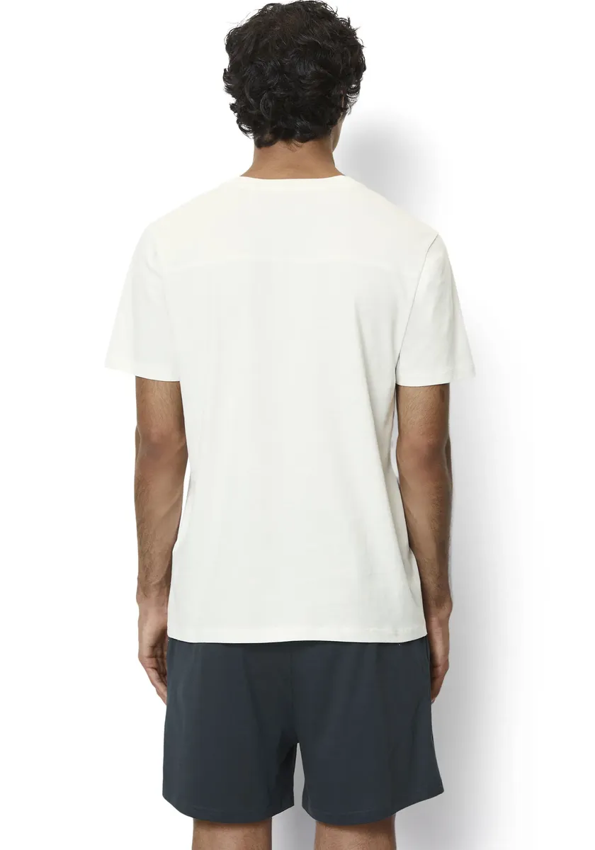 Комбинированная мужская футболка от Marc O'Polo с логотипом. С прикрытием на бедрах и обычным кроем. Модель украшена модным принтом с логотипом. Это позволяет создавать комфортные образы.
