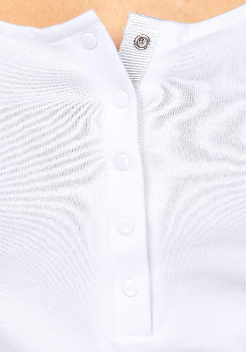 Комбинированная прочная женская майка от бренда Melrose. С прикрывающим бедра и приталенным кроем. Сверху также имеются кнопки-защелки. Благодаря эластичному трикотажу верх мягкий и удобный. Доступен в упаковке по 2 шт.