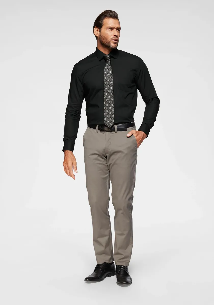 Комбинированная прочная мужская рубашка с длинными рукавами от Man's World. С тонким вырезом. Это можно использовать для создания праздничных образов. Мягкая смесь хлопка делает верх особенно комфортным.