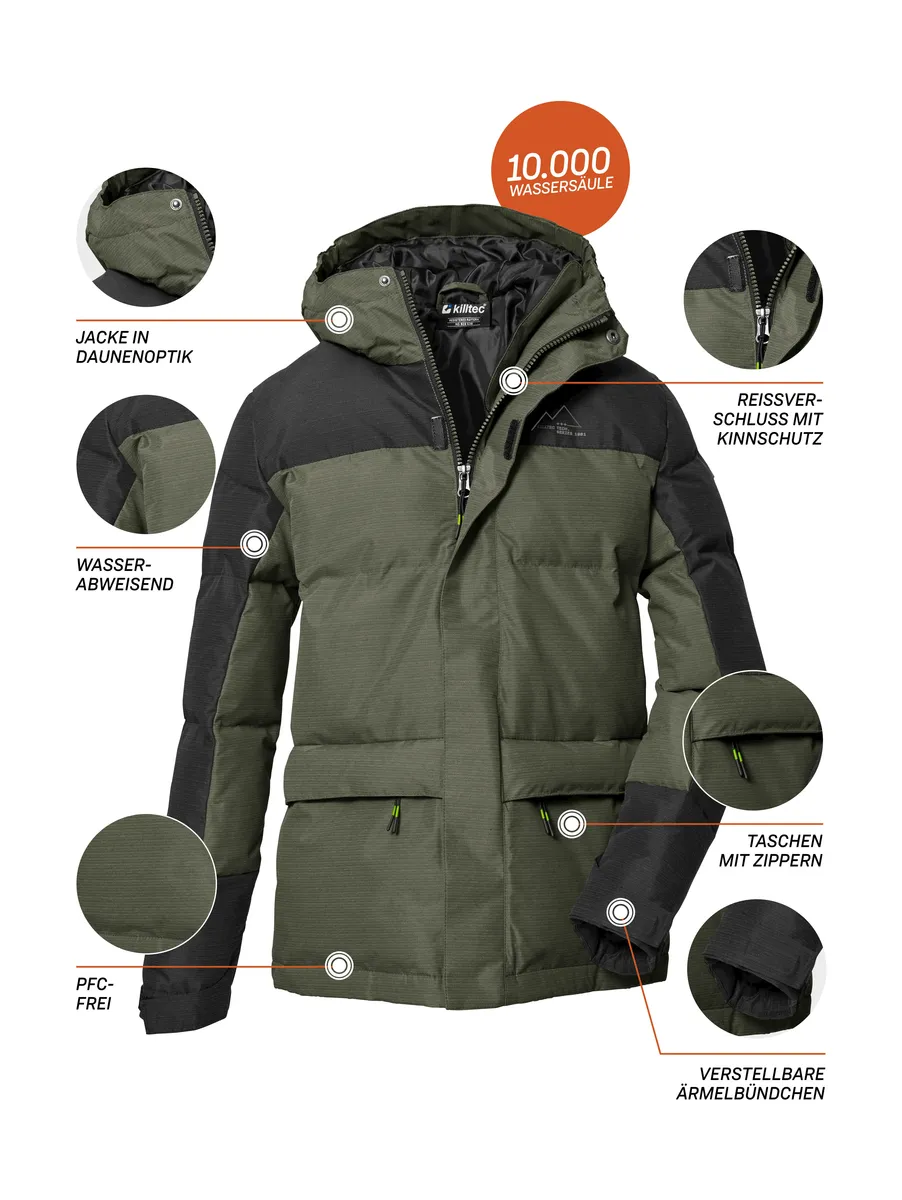 Детская зимняя стеганая куртка с капюшоном от killtec водо- и ветроотталкивающая, но при этом дышащая. Визуально он впечатляет своим цветовым дизайном и светоотражающими элементами. Манжеты можно регулировать с помощью застежек-липучек. Защита подбородка на потайной молнии предотвращает защемление кожи. Два боковых кармана обеспечивают достаточно места для хранения. Для killtec особенно важно сделать коллекции более устойчивыми и ориентированными на будущее. killtec все больше полагается на более ответственные производственные процессы. Поэтому эта зимняя куртка была пропитана средствами, не содержащими фтора.