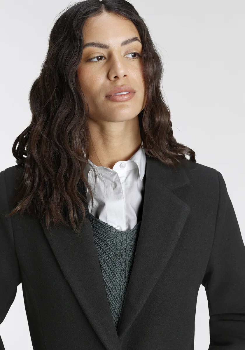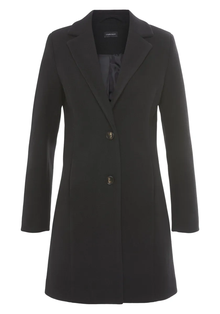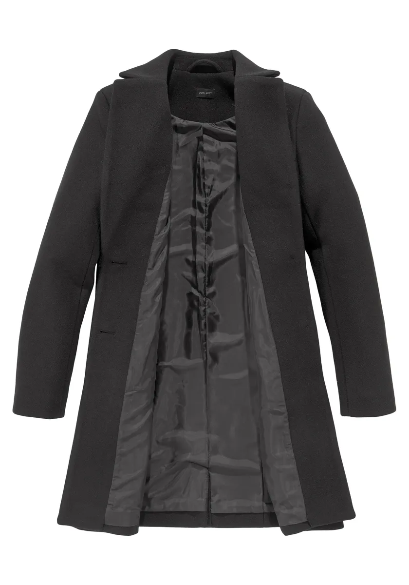 В коротком пальто Лоры Скотт женщины не только согреются, но и модно одеты. Пальто с воротником с лацканами имеет очень короткий и облегающий фигуру крой. На конце туловища также имеется закругленный край. Мелкие предметы можно хранить в карманах для рук. Короткое пальто из тканого материала сохраняет легкость даже после долгого дня. Его можно сочетать с шикарным нарядом для офиса или ужина с друзьями.