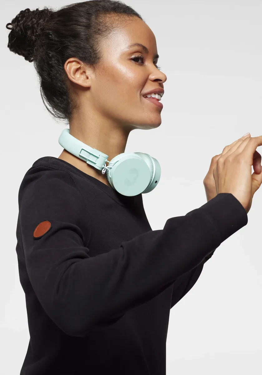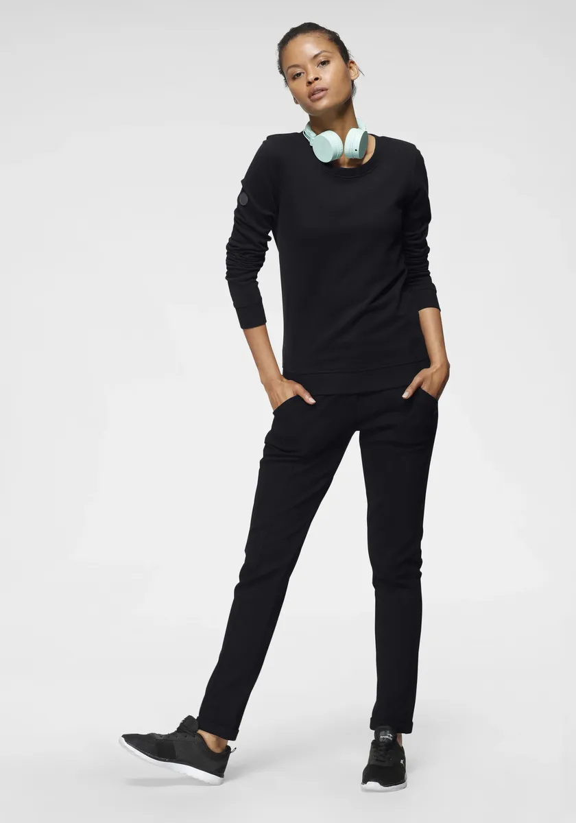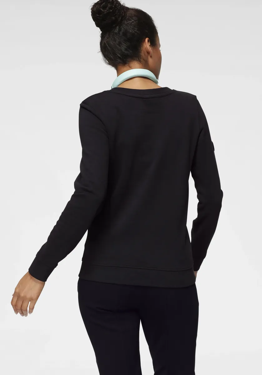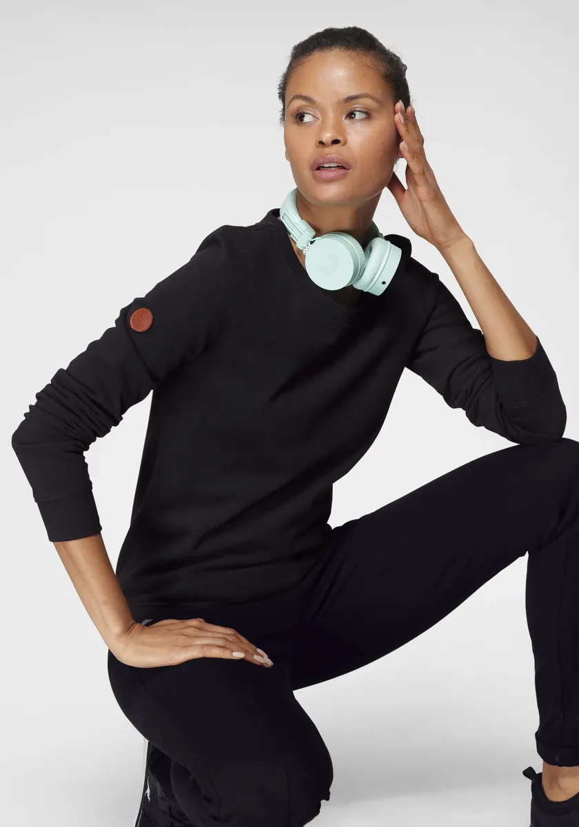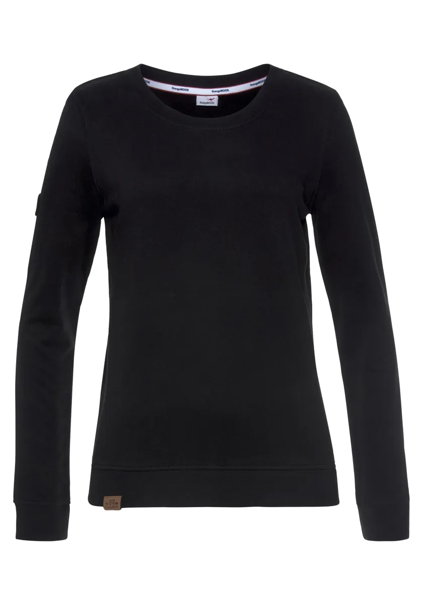 Комбинированная прочная толстовка для женщин от KangaROOS. Длина до бедра и эластичный крой. Рукава длинные. Он украшен модными значками. Верх из ткани с начесом создает ощущение уюта и мягкости.