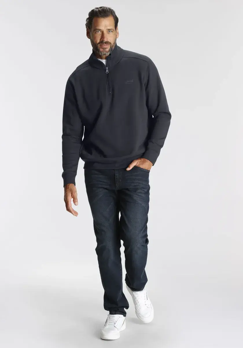 Комбинированная прочная толстовка для мужчин от Man's World. С обычным широким вырезом. Толстовка также имеет молнию. Имеет повседневный принт. Верх комфортен для кожи благодаря мягкой хлопковой смеси.