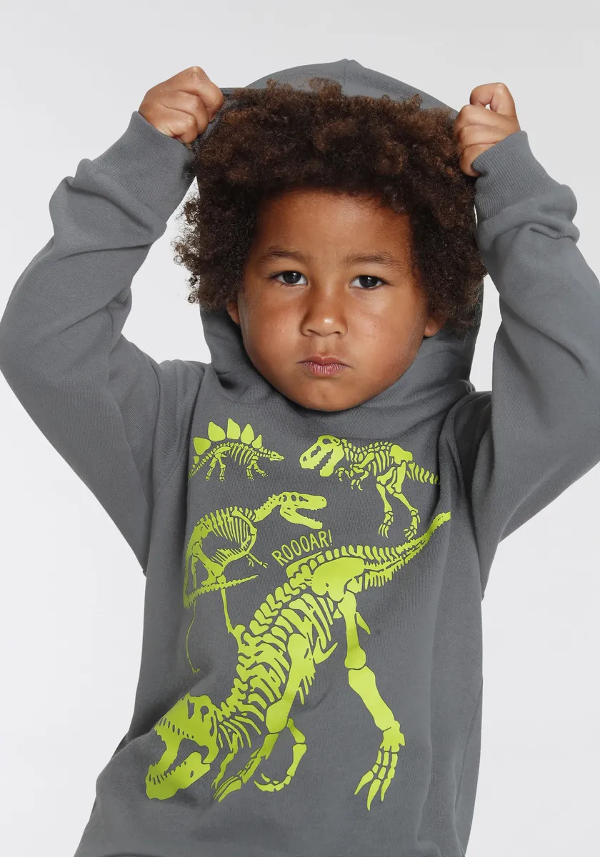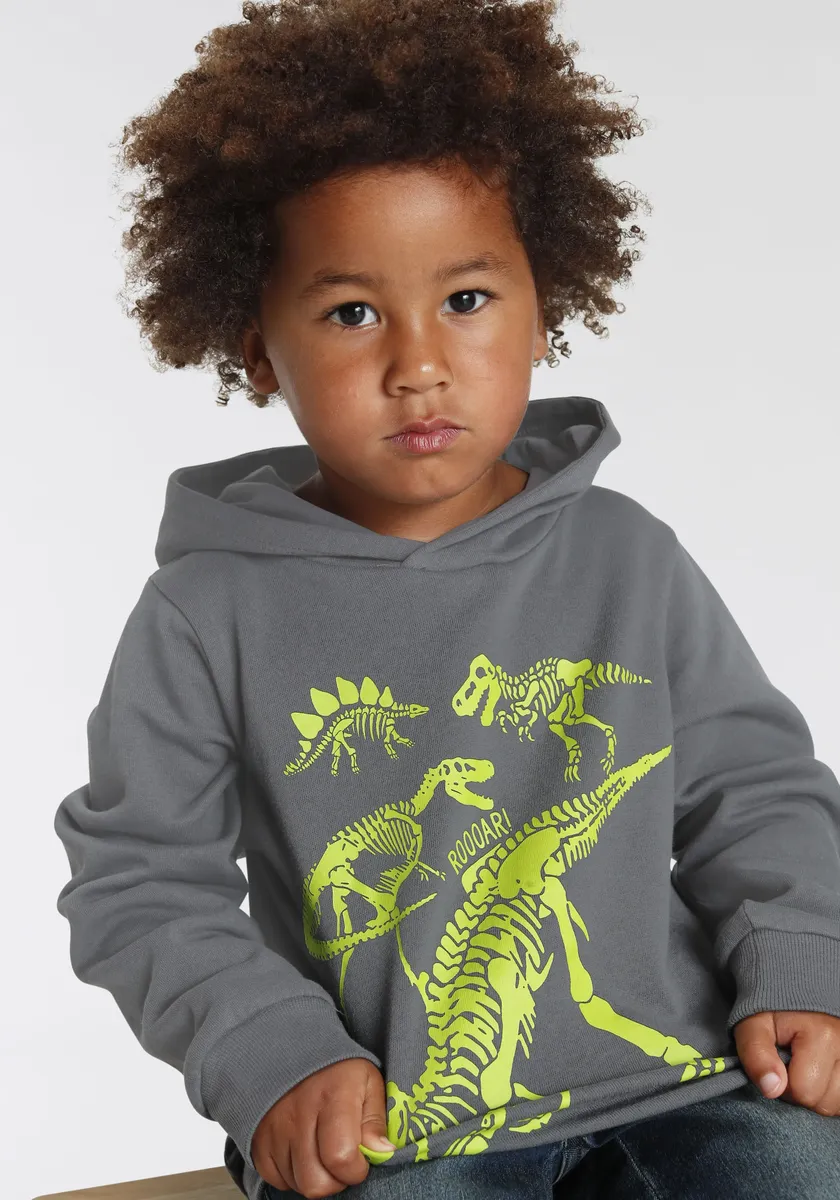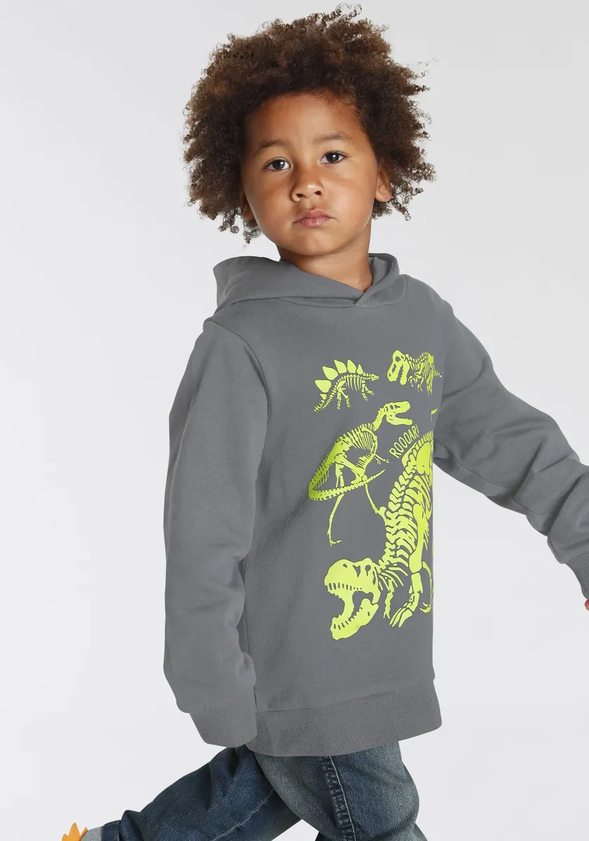 KIDSWORLD толстовка с капюшоном "ДИНО" для маленьких мальчиков, антрацит