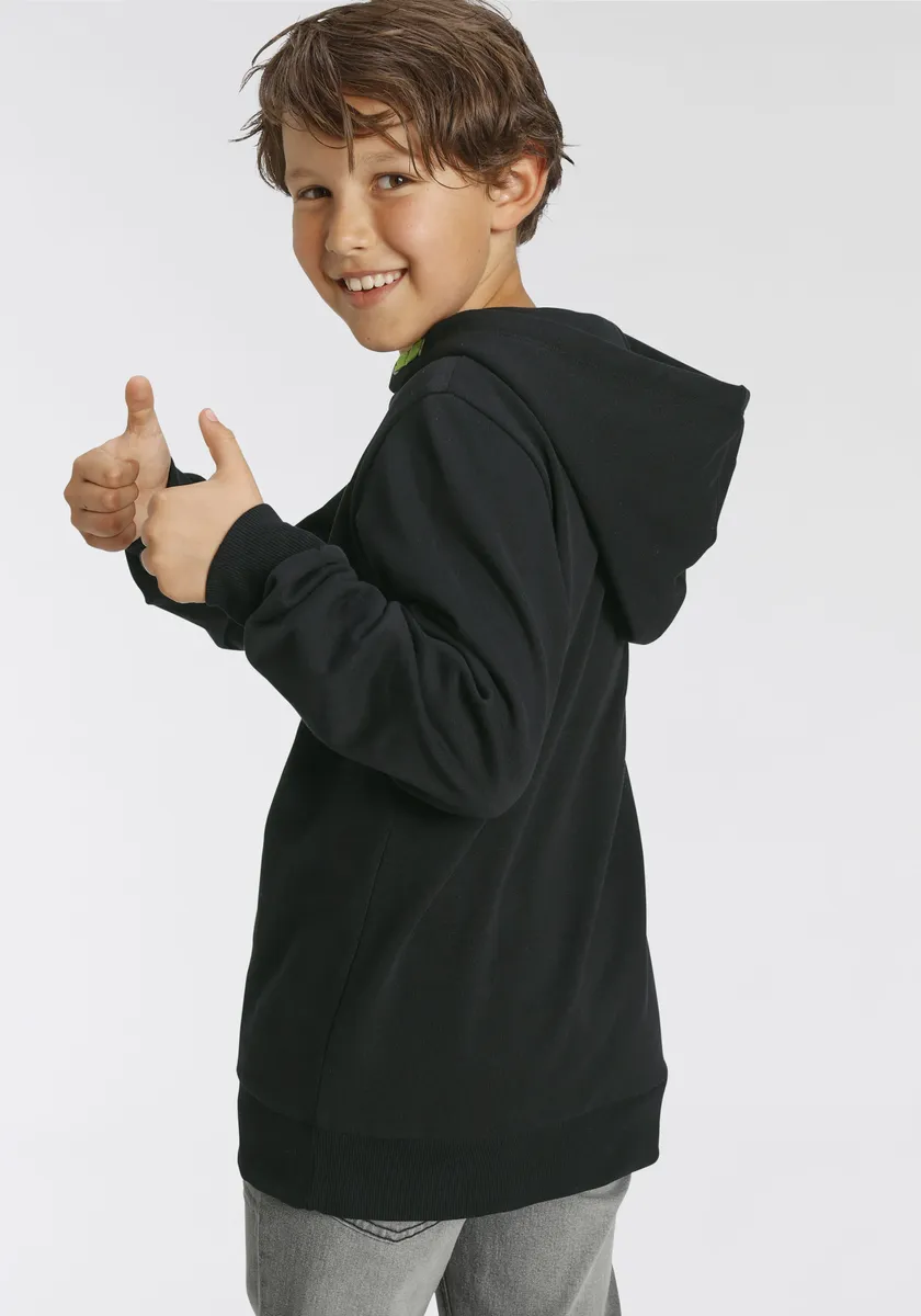 Комбинированная прочная толстовка с капюшоном от бренда KIDSWORLD. С обычным широким вырезом. Есть крутой принт. Верх из ткани с начесом создает ощущение уюта и мягкости.