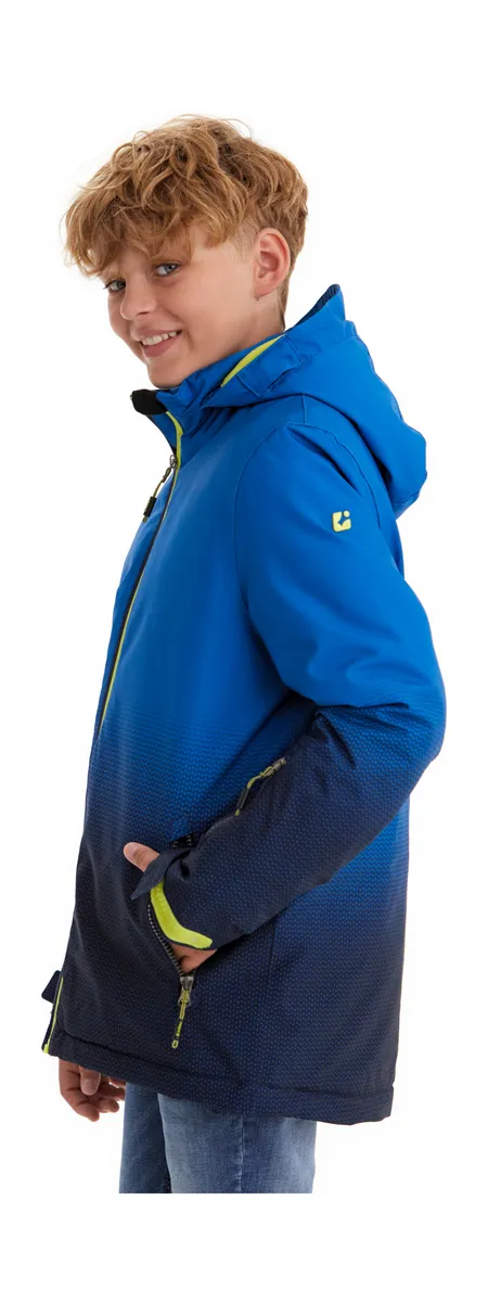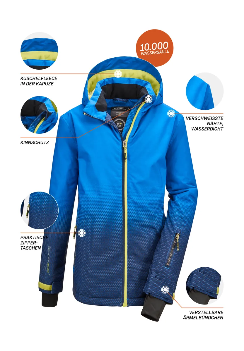 Детская функциональная куртка со снегозадержателем идеально подходит для горнолыжных склонов, а также для любых приключений на свежем воздухе или для повседневных приключений. Визуально он впечатляет своим крутым градиентным видом и деталями контрастных цветов. Куртка на 100% водонепроницаема и ветронепроницаема, имеет водный столб 10 000 мм и сварные швы. Манжеты из лайкры на регулируемых манжетах обеспечивают хорошую посадку и предотвращают проникновение ветра. Боковые карманы и карман для ски-пасса закрываются на молнии, чтобы ничего не потерялось.