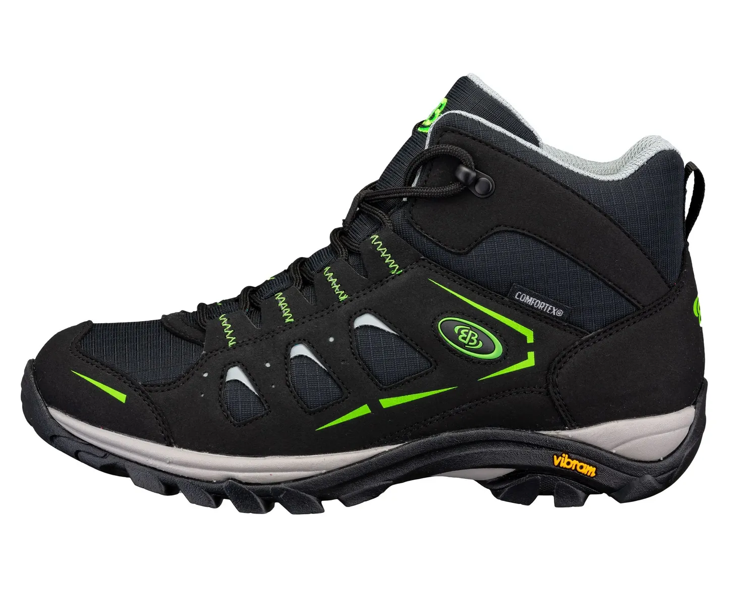 Функциональные походные ботинки Mount Frakes High от Brütting. Верх выполнен из прочного синтетического материала с нейлоновыми вставками. Водонепроницаемая и дышащая климатическая мембрана Comfortex обеспечивает сухость ног внутри и снаружи. приятная мягкая текстильная подкладка. сменная текстильная стелька. Стабильная и нескользящая подошва Vibram для надежного сцепления даже на неровной поверхности.