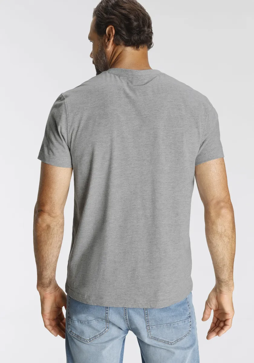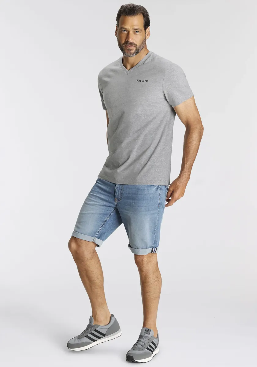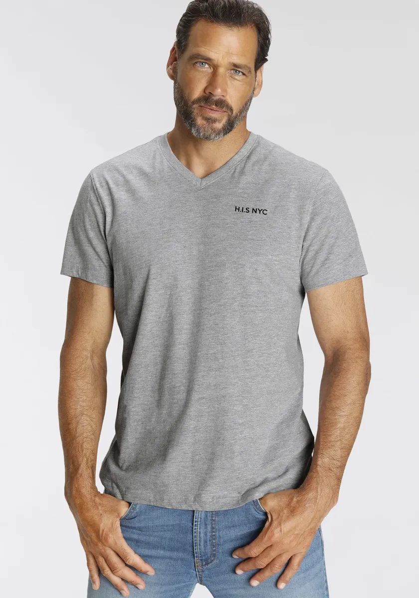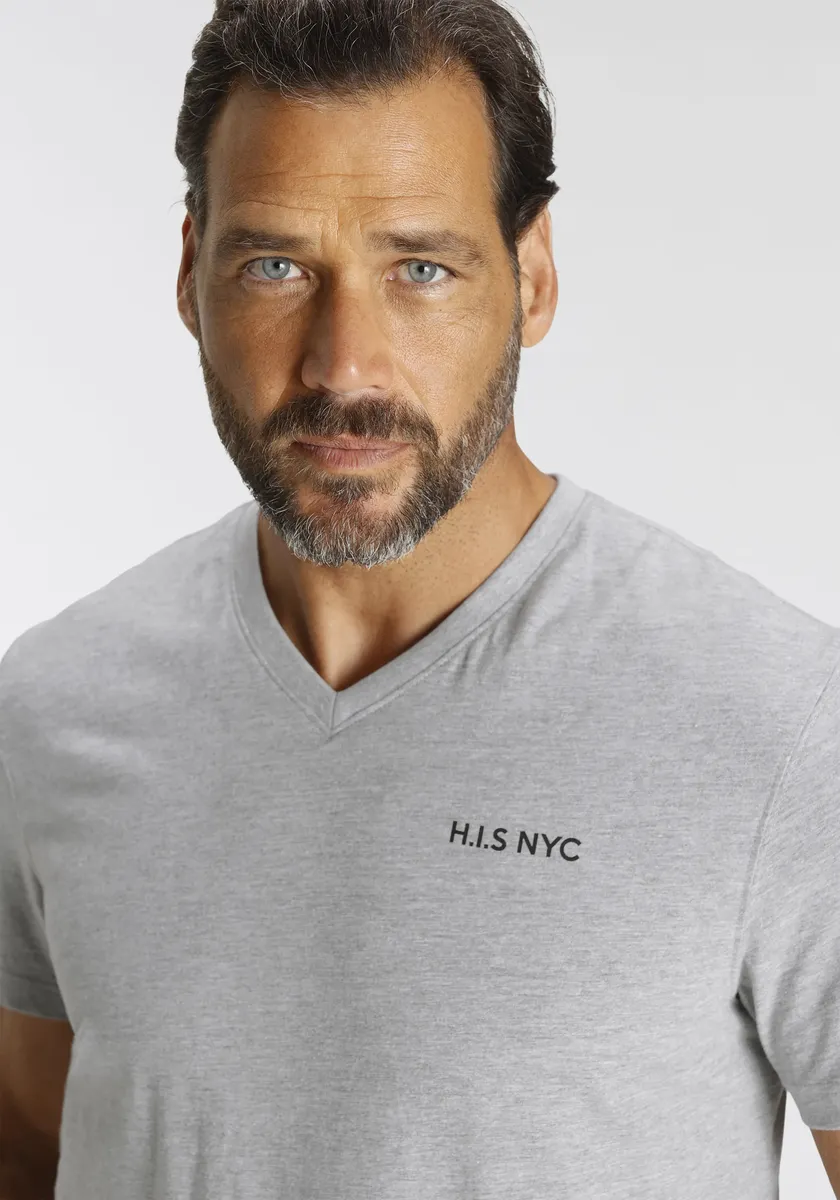 Комбинированная прочная футболка для мужчин от H.I.S. С гибким вырезом. Рукава короткие. Имеет классный логотип. Верх из эластичного и мягкого одинарного трикотажа обеспечивает высокий уровень комфорта.