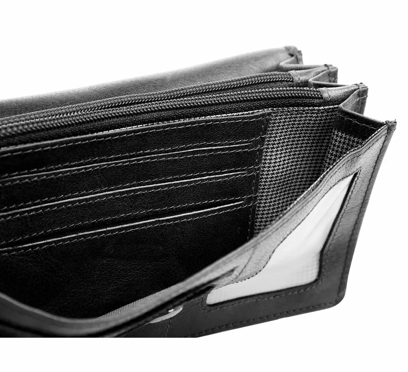 Знаете ли вы, что почти каждая пластиковая карта имеет встроенный чип со всеми вашими личными данными? Существует привлекательное решение для защиты этих цифровых данных — кожаный кошелек от Spike & Sparrow с RFID-защитой. Кошелек, который не только хорошо выглядит, но и защищает вашу конфиденциальность и ваши деньги. * 100% воловья кожа* RFID-защита от несанкционированного использования данных по радио* 3 отделения для купюр* 13 отделений для карт* 3 видимых отделения* 1 внутренний карман* 2 кармана на молнии* 1 внешний карман* 1 внешний карман на молнии* Тонкое тиснение логотипа спередиОсобенности: натуральная кожаТитульное дополнение: натуральная кожаШирина: 17 см Вес: 145 Высота: 9 см Глубина: 3 см Количество внешних карманов: 1 Количество внутренних карманов: 1 Количество отделений для карт: 13 Количество отделений для купюр: 3 Количество видимых карманов: 3 Внешний материал: 100% воловья кожа Размер: один размер Основная застежка: кнопка Внутренний материал: смесь материалов Внутренний вид: с рисунком Вес: 145 г Монетное отделение: есть (застегивается на молнию) Внешний вид Поверхность: обработанная, блестящая Объем: 0,1 лФормат : альбомный формат
