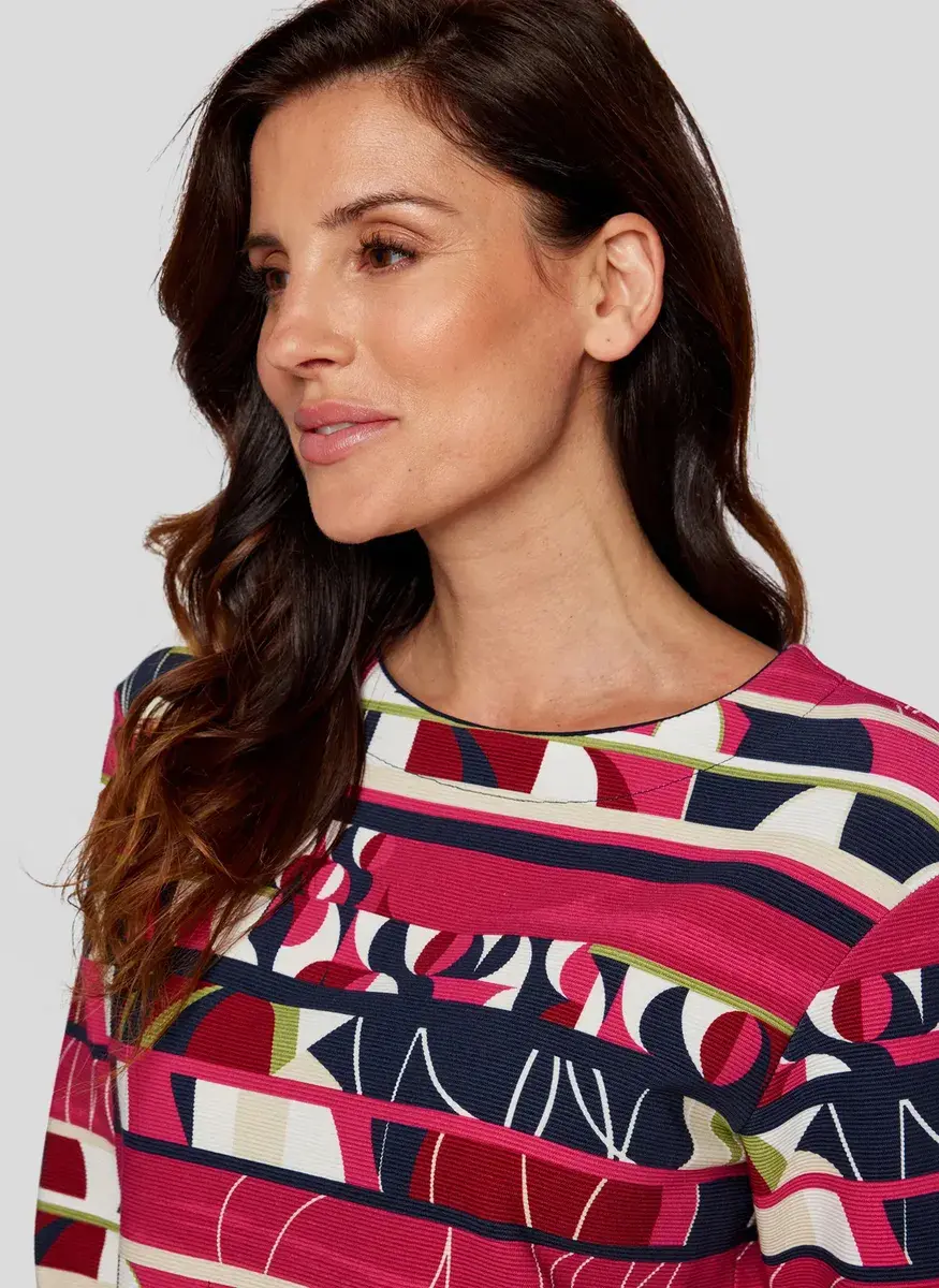 Этот красочный свитшот привлечет внимание и внесет глоток свежего воздуха в ваш гардероб. Красочные графичные полосы и геометрические фигуры создают живой дизайн. Свободный, слегка приталенный крой обеспечивает оптимальный комфорт при ношении. Ребристая структура. Состав материала: 76% хлопок, 16% полиэстер, 8% эластан. Длина по спинке: Длина по спинке от плеча для размера 38: 62 см. Описание: Яркий свитшот с графическим рисунком. Подкладка: Нет. Форма воротника: Круглая. воротникКраткое описание: Яркая толстовка с привлекательным графическим рисунком и удобным кроем - идеально подходит для любого случая.Материал Дополнительный текст 2: НетМатериал верха: 76%Хлопок 16%Полиэстер 8%ЭластанВид: С рисункомПосадка: Прямой кройИнструкции по уходу: Бережная стирка при 30°С C, Не отбеливать, Гладить при низкой температуре, Не использовать машинную сушку, Не подвергать химчисткеДополнительные инструкции по уходу: Стирать наизнанку, гладить наизнанку, рукава: рукав 3/4