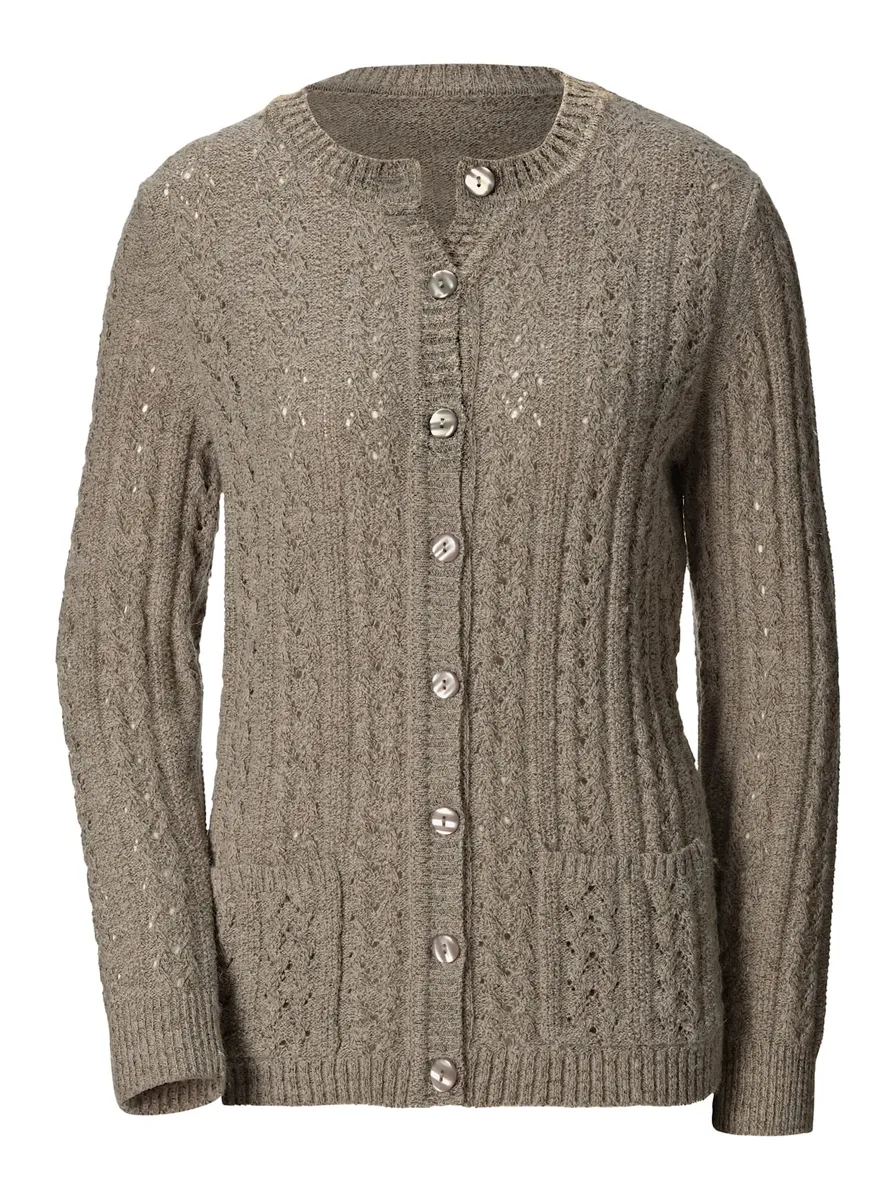 Кардиган с красиво оформленным ажурным узором.