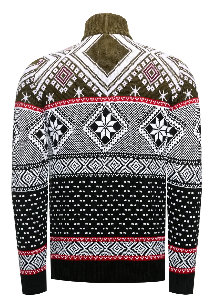 Этот модный вязаный свитер от Rusty Neal впечатляет своим зимним узором. Воротник-стойка с короткой планкой на молнии согреет вас в холодные дни, но его также можно носить расстегнутым в повседневном стиле. Наша модель ростом 1,85 м весит около 80 кг, носит размер М.