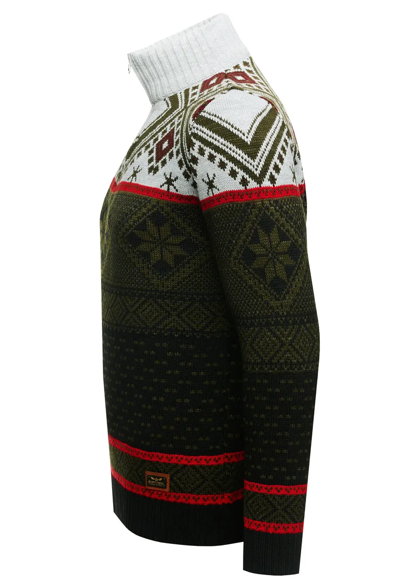 Вязаный свитер Rusty Neal с зимним узором, хаки