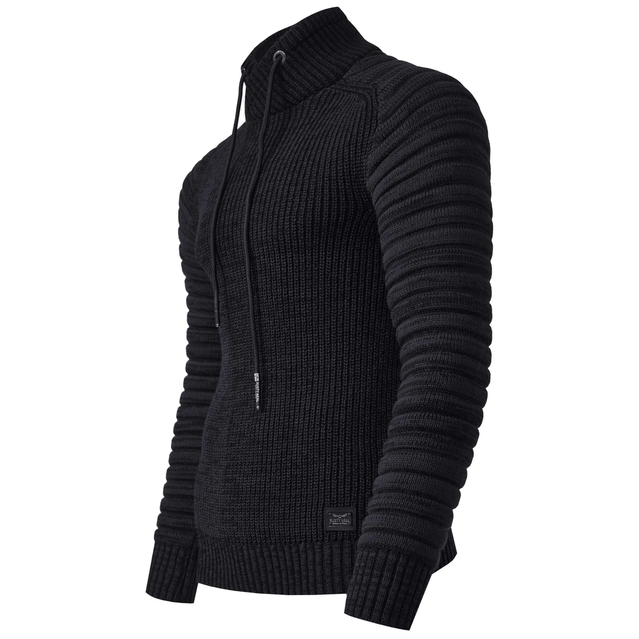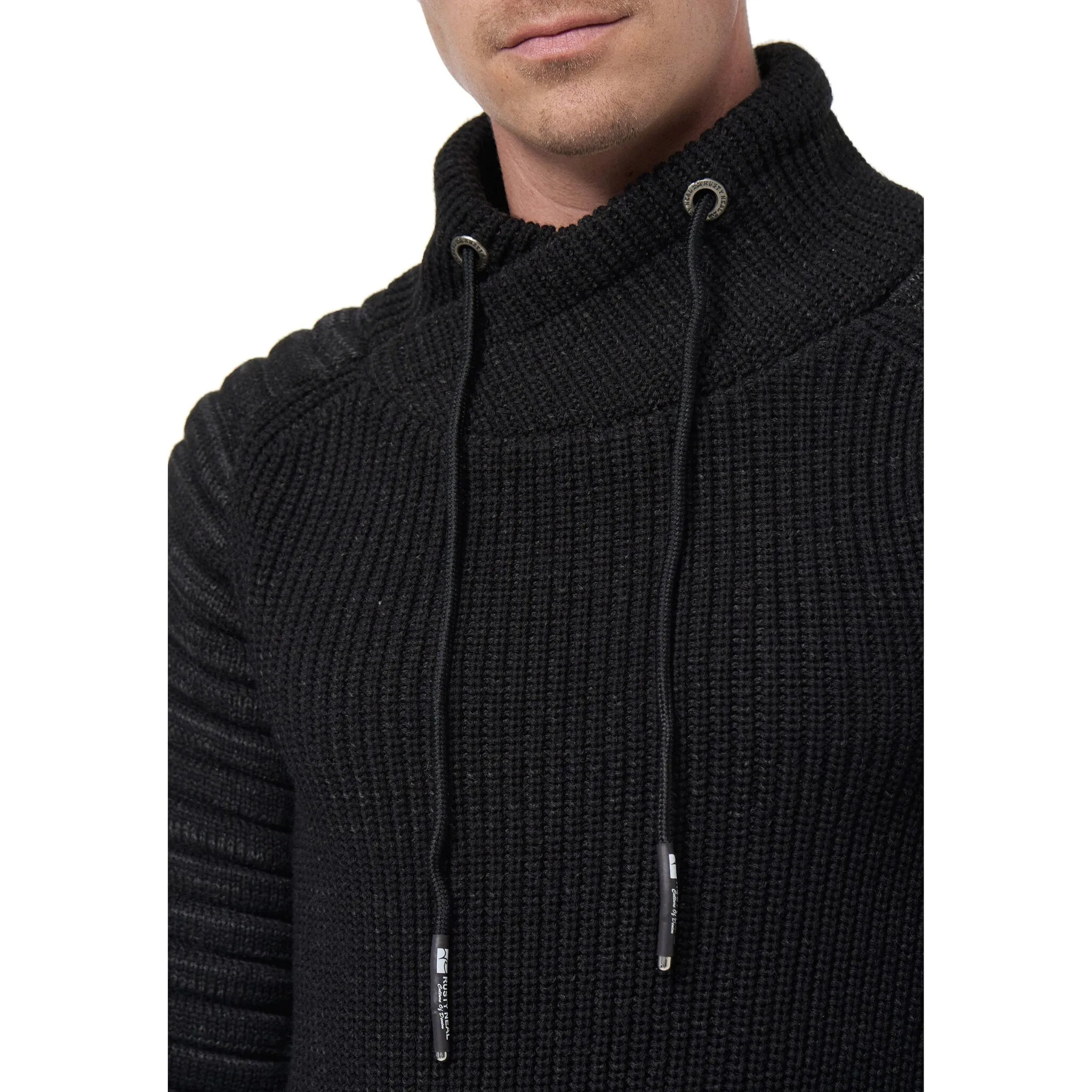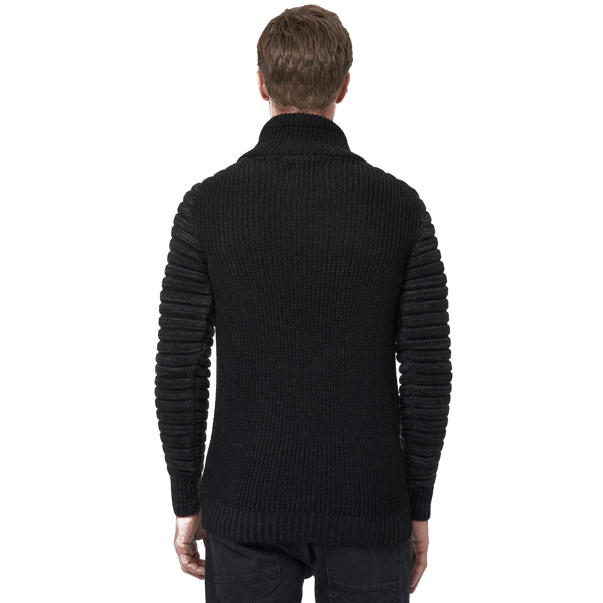 Этот модный вязаный свитер от Rusty Neal согреет вас даже в холодные дни благодаря уютному шалевому воротнику на шнурке. Схема вязания рукавов отличается от остальной части свитера и тем самым задает модный акцент. Наша модель ростом 1,85 м весит около 80 кг, носит размер М (средний).
