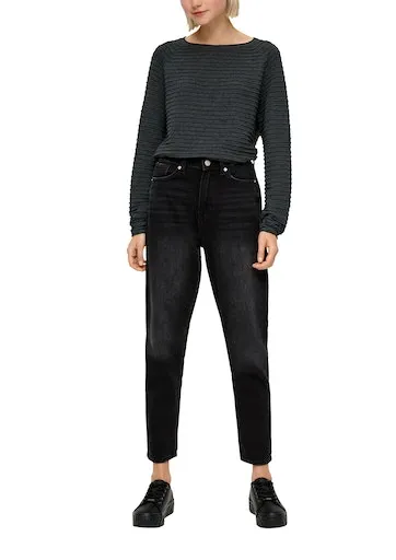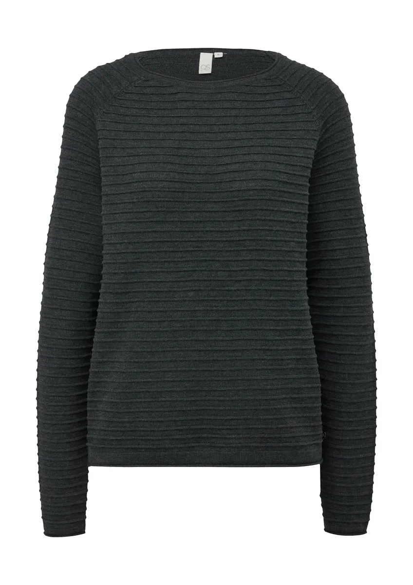 Свитер QS с круглым вырезом и структурированным узором, черный