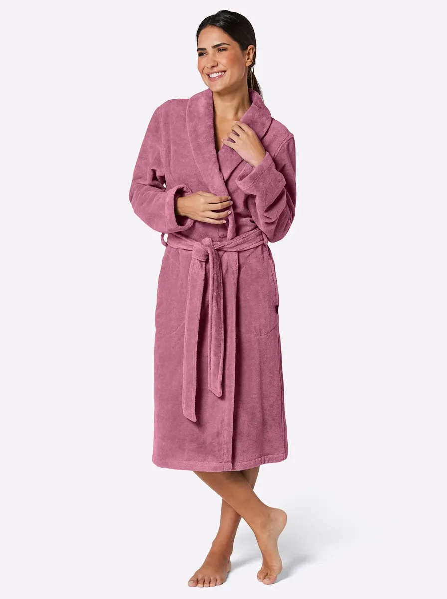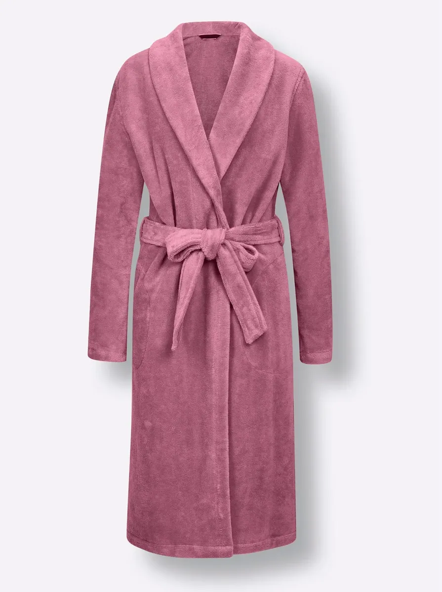 В особенно приятном, качественном велюре! Элегантный халат от CaWö с эффектным шалевым воротником, петлями для ремня и поясом-завязкой. Боковые карманы. Удобная смесовая ткань с хлопком внутри. 80% хлопок, 20% полиэстер.
