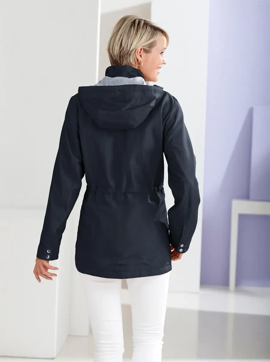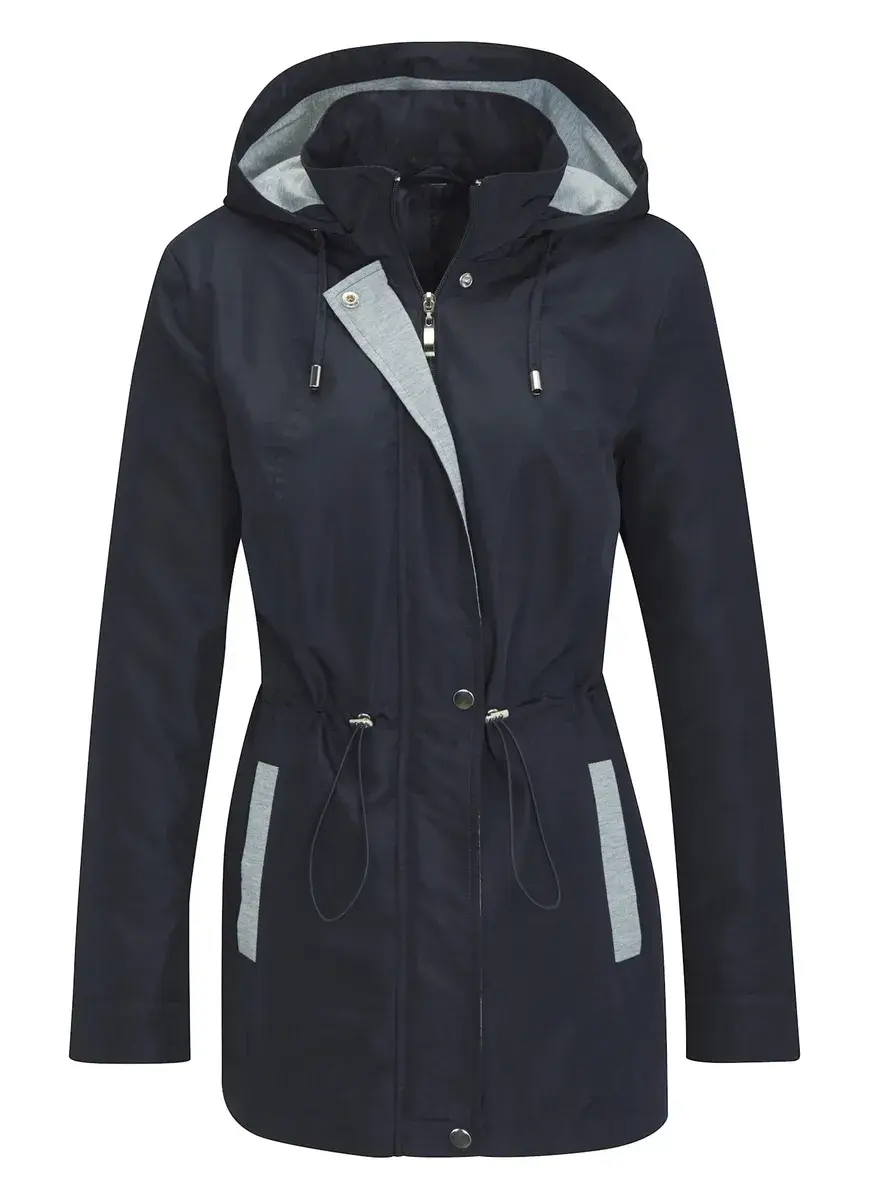 В переходный период и в пасмурную летнюю погоду с этой курткой вы будете выглядеть стильно! Новинка: капюшон, два накладных кармана, внутренняя планка на кнопках и манжеты из серого трикотажа. С молнией во всю длину и регулируемым шнурком на талии. 100% полиэстер. Подкладка: 100% полиэстер. Отделка: 70% полиэстер, 30% хлопок. Машинная стирка.