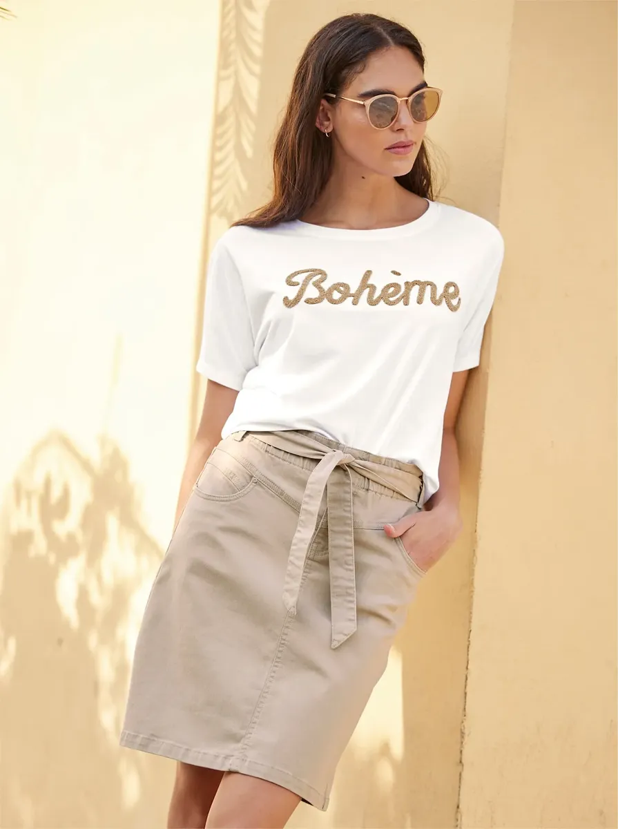 Джинсовая юбка Heine, бежевый