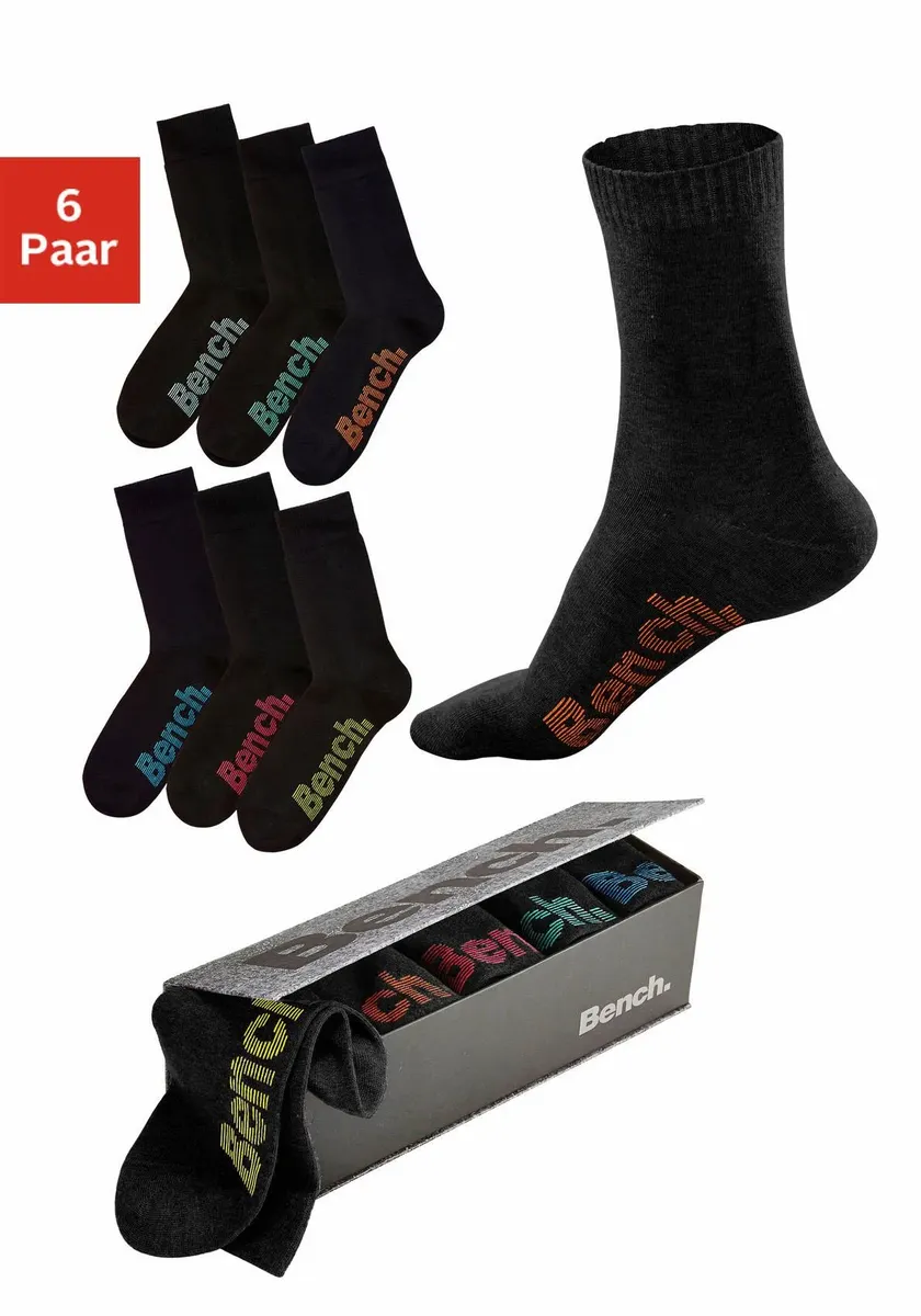 Bench Носки (коробка, 6 пар) с разноцветными логотипами, черный