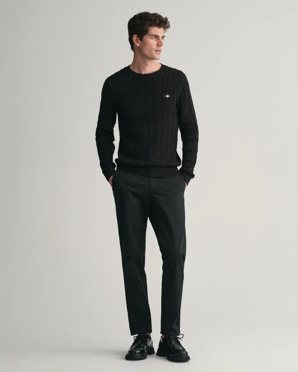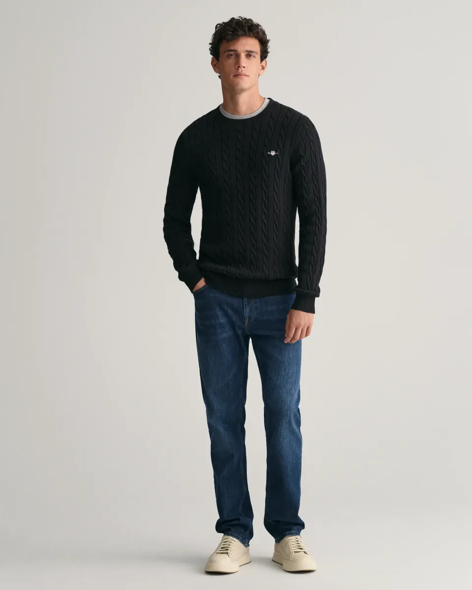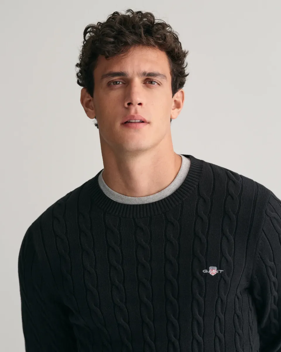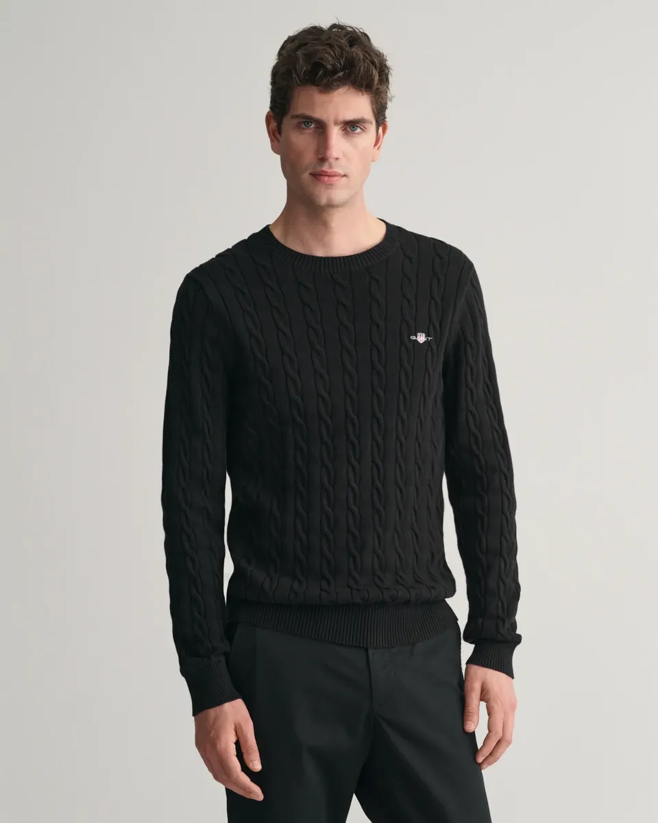 Вязаный свитер "COTTON CABLE C-NECK" с вышивкой герба на груди Gant, черный