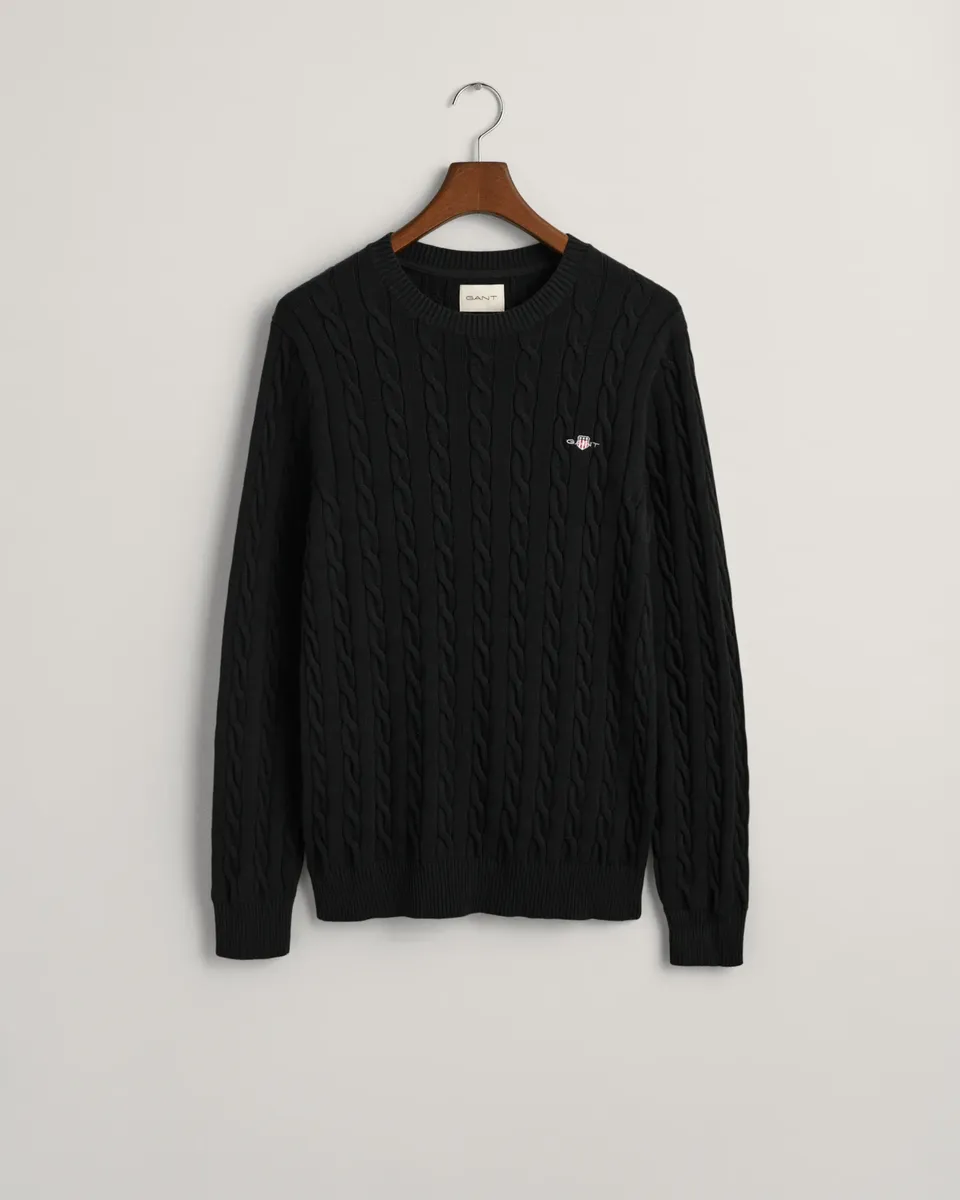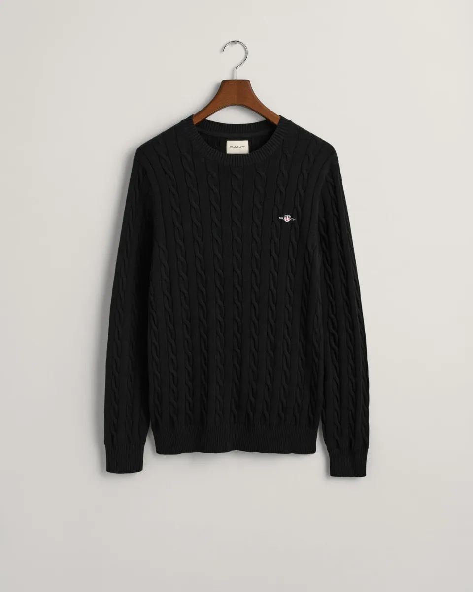 Вязаный свитер "COTTON CABLE C-NECK" с вышивкой герба на груди Gant, черный 13 009₽