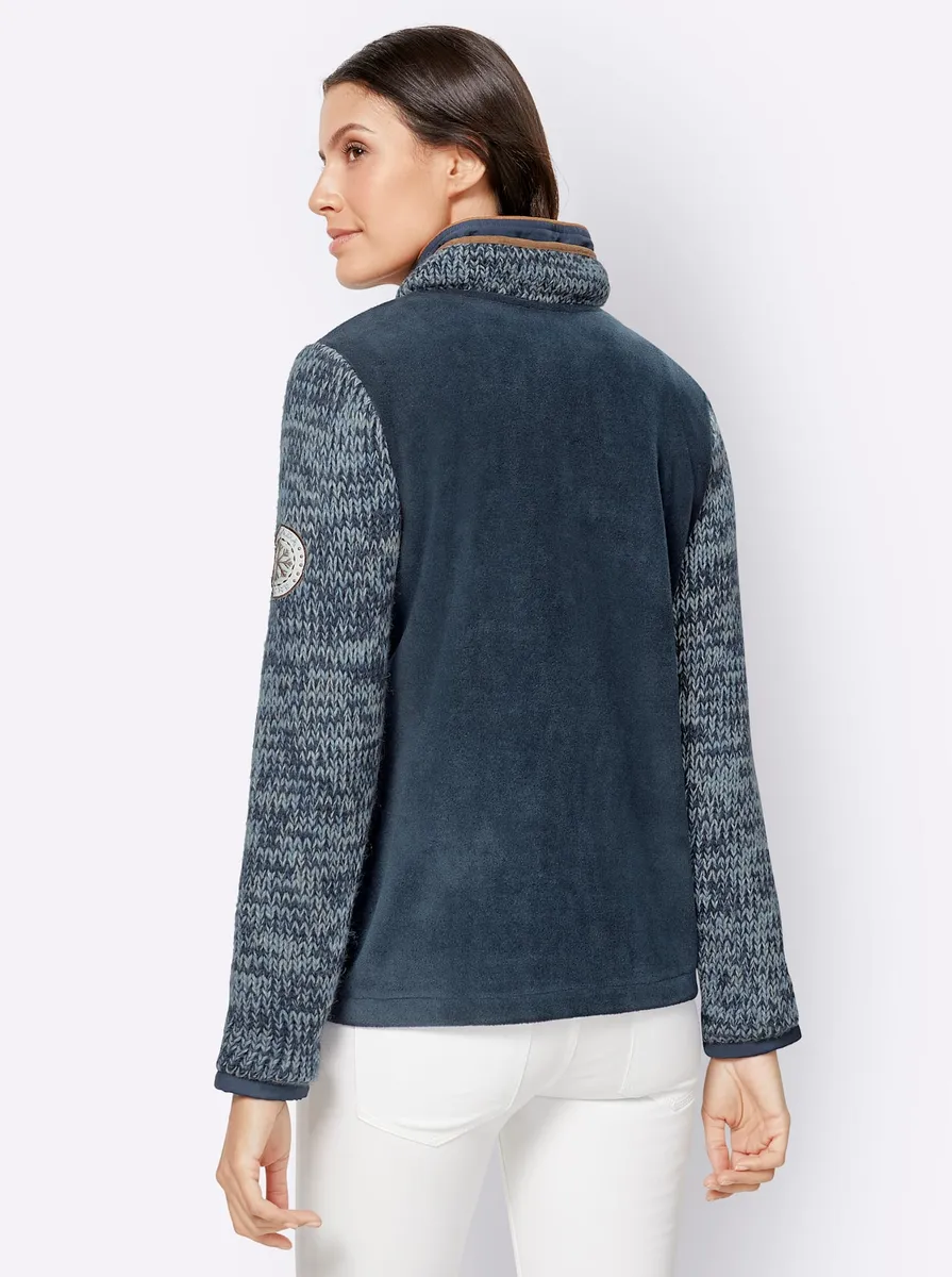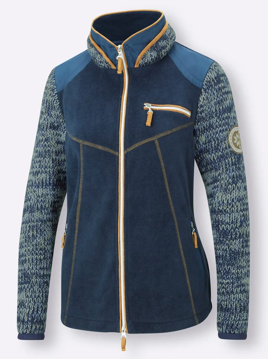 Идеально подходит для переходного периода и абсолютно современна: флисовая куртка из модной смеси флиса и трикотажа. Вязаные рукава отделаны трикотажной подкладкой. Это сохраняет приятное тепло. Швы контрастного цвета расставляют яркие акценты. Левый рукав украшен красивой вязаной эмблемой. С современным двойным воротником-стойкой, двусторонней молнией и встроенными карманами. Нагрудный карман имеет вставку из высококачественной искусственной кожи. 100% полиэстер. Вязание: 70% полиакрил, 20% шерсть, 10% полиамид. Подкладка: 60% хлопок, 40% полиэстер. Машинная стирка.