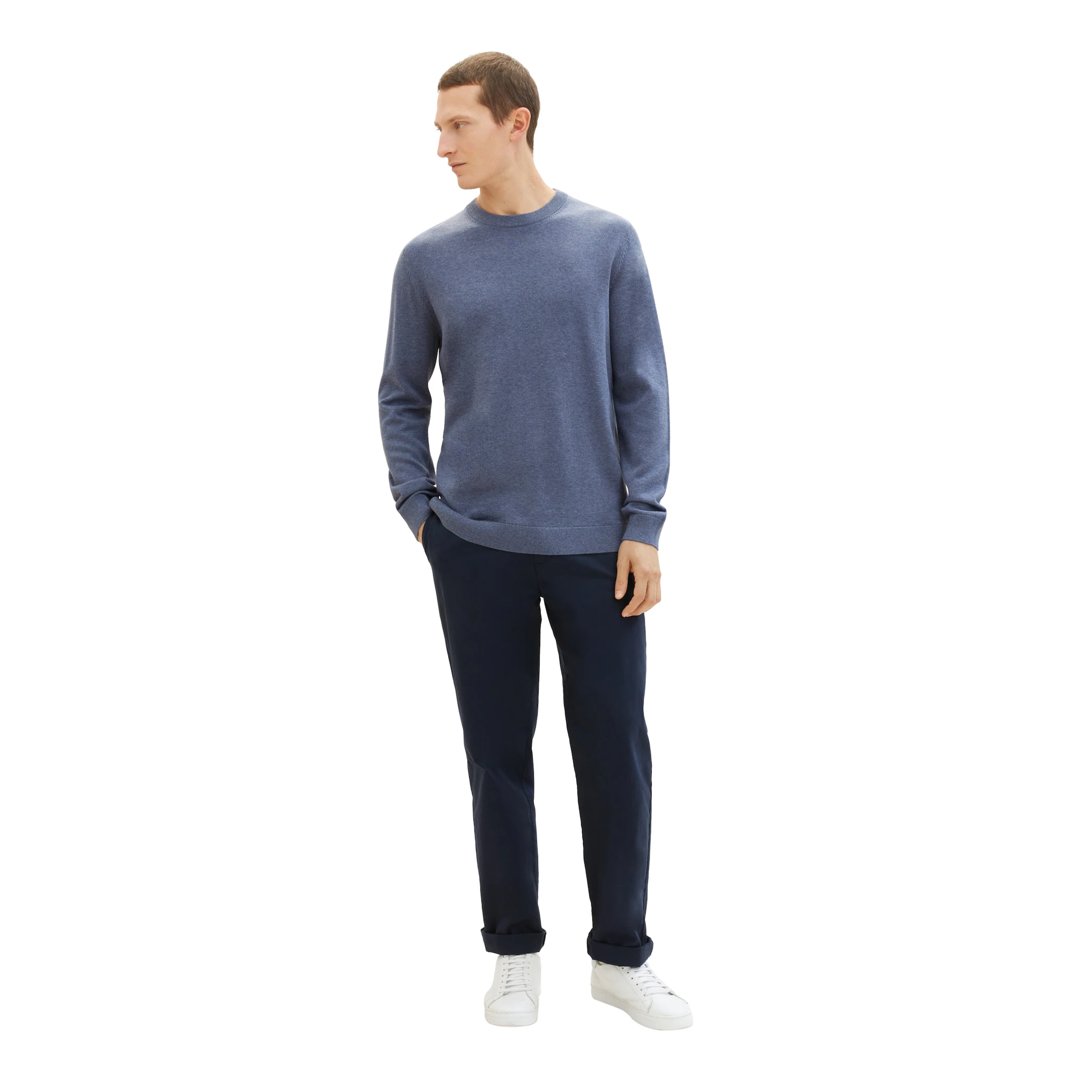 Комбинированный мужской свитер с круглым вырезом от TOM TAILOR с логотипом. Рукава длинные. Это позволяет создавать повседневные и стильные образы. Топ из эластичного трикотажа адаптируется к форме вашего тела и повторяет каждое ваше движение.