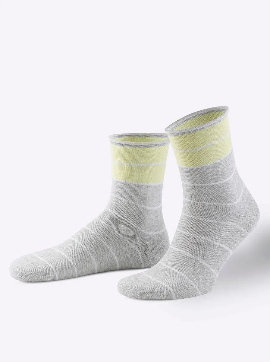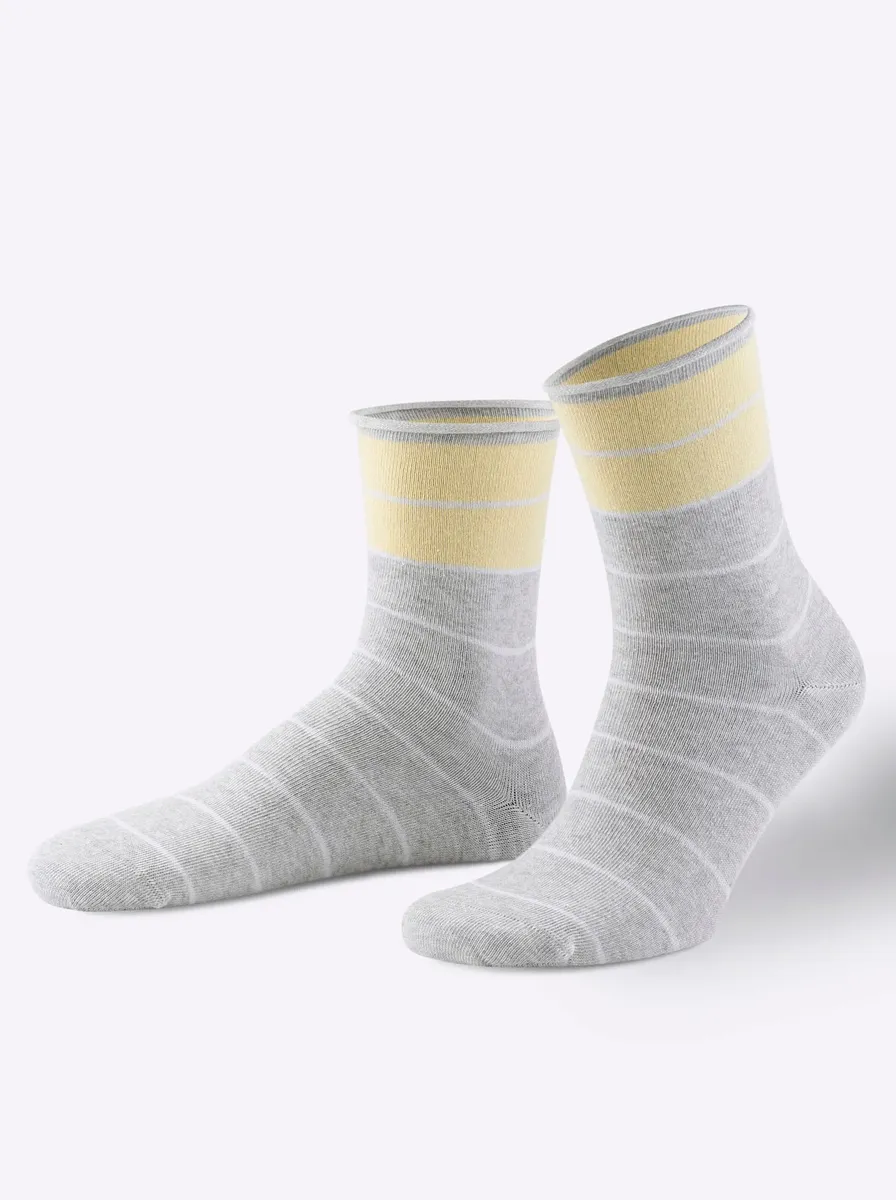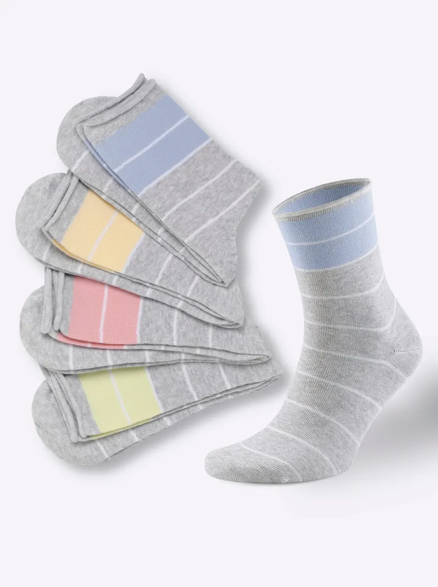 В практичной упаковке от Waschpur по 4 штуки: женские носки с ненадавливающим закругленным краем и соединенным вручную носком. 80% хлопок, 18% полиамид, 2% эластан.