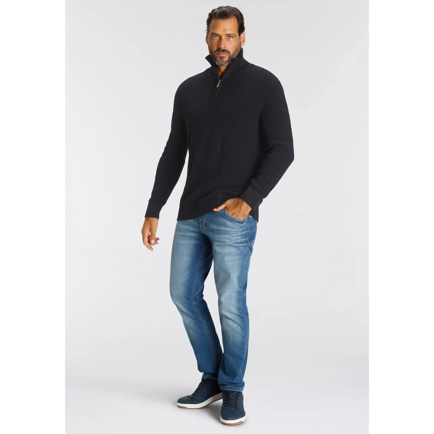 Комбинированный мужской тройник от бренда H.I.S с логотипом. С обычным широким вырезом. Это позволяет создавать крутые и повседневные образы. Вязаный топ сохраняет тепло и очень удобен в носке.