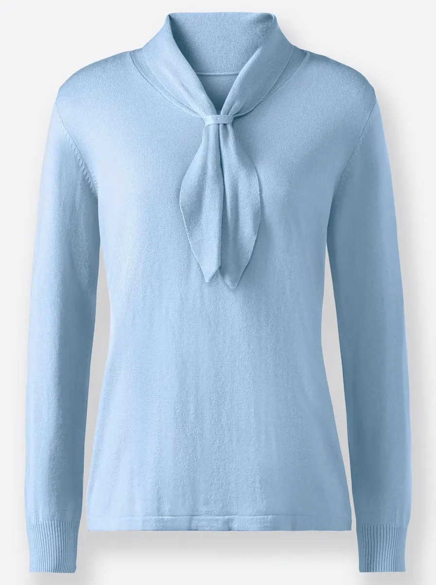 В приятном мягком качестве с модалом! Свитер с женственным бантом и изящными стразами. Ребристые манжеты. Прямой подол. Аккуратно связала по форме. 50% модал, 30% полиамид, 20% полиэстер. Машинная стирка.