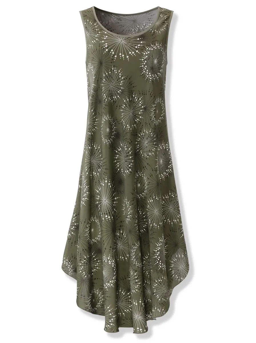 Идеальное платье для летних дней мечты! Великолепный вид благодаря удлиненному заостренному вырезу посередине и характерному цветочному узору, легкий и воздушный благодаря фасону без рукавов, круглому вырезу и удобной ширине. Плавное качество. Окаймлен простой окантовкой на круглом вырезе и вырезе рукавов. 100% вискоза. Машинная стирка.