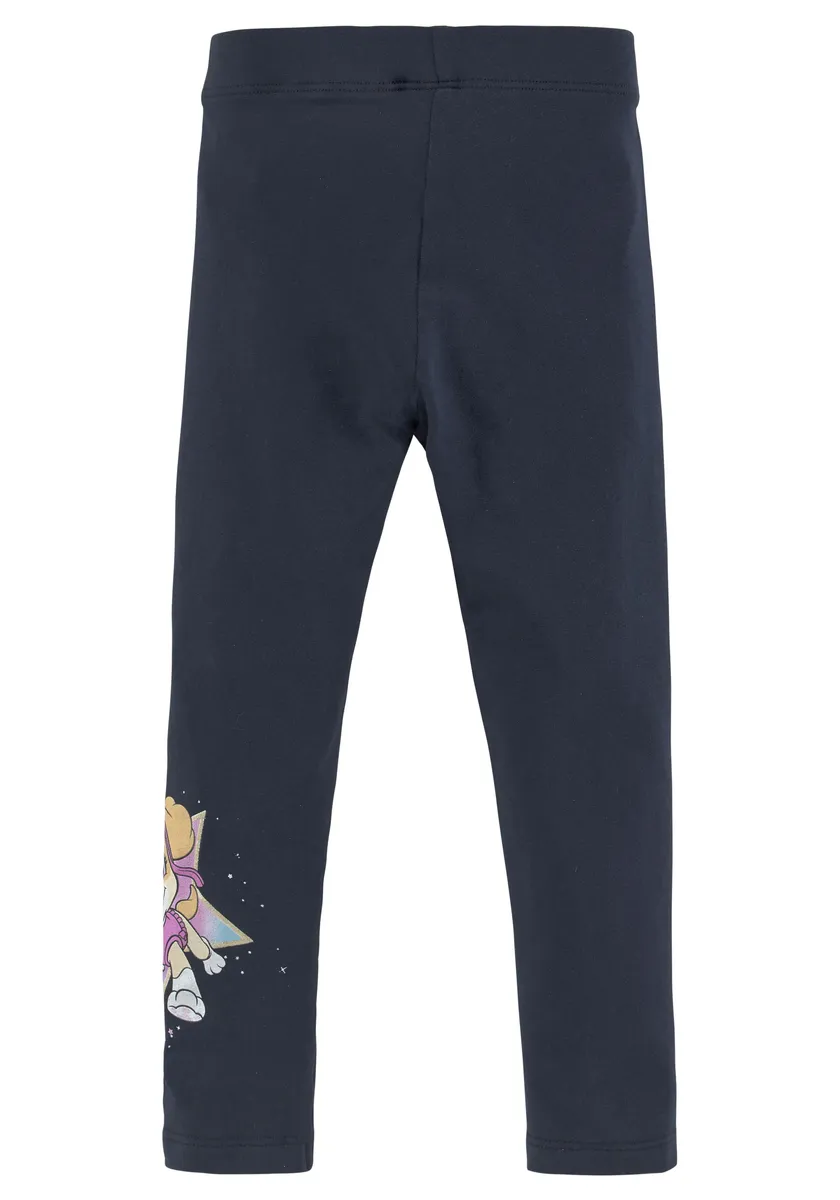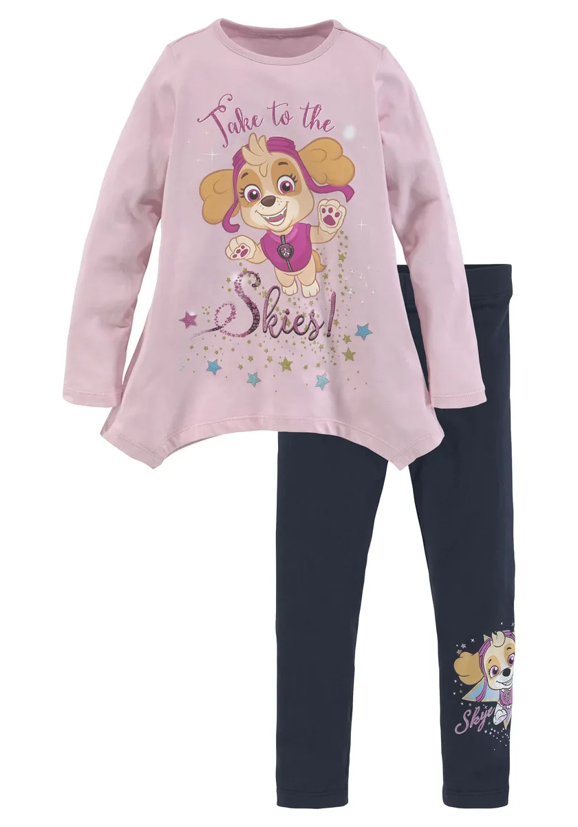 Комплект-двойка «Скай» из «Щенячьего патруля» с рубашкой с длинными рукавами и леггинсами. Топ с крупным принтом спереди, заостренным краем и круглым вырезом. Брюки с принтом сбоку на икре и эластичным поясом. Мягкий, эластичный трикотаж.