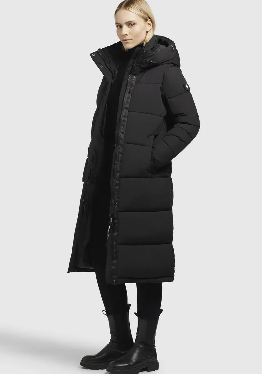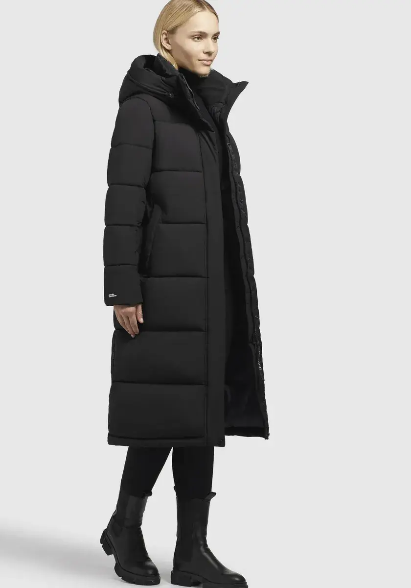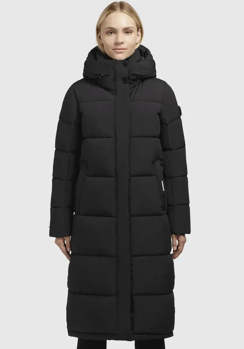 Длинный пуховик >>TIONE Благодаря теплому утеплителю, воротнику-стойке с флисовой вставкой, высокому капюшону и эластичным манжетам на подкладке рукавов пальто бросает вызов морозной зимней погоде. Двусторонняя молния с планкой на кнопках обеспечивает максимальную свободу движений в этом стеганом пальто длиной до колен. Согревающее и простое в уходе стеганое качество. На нашей модели (176 см, 89/61/91) размер S.