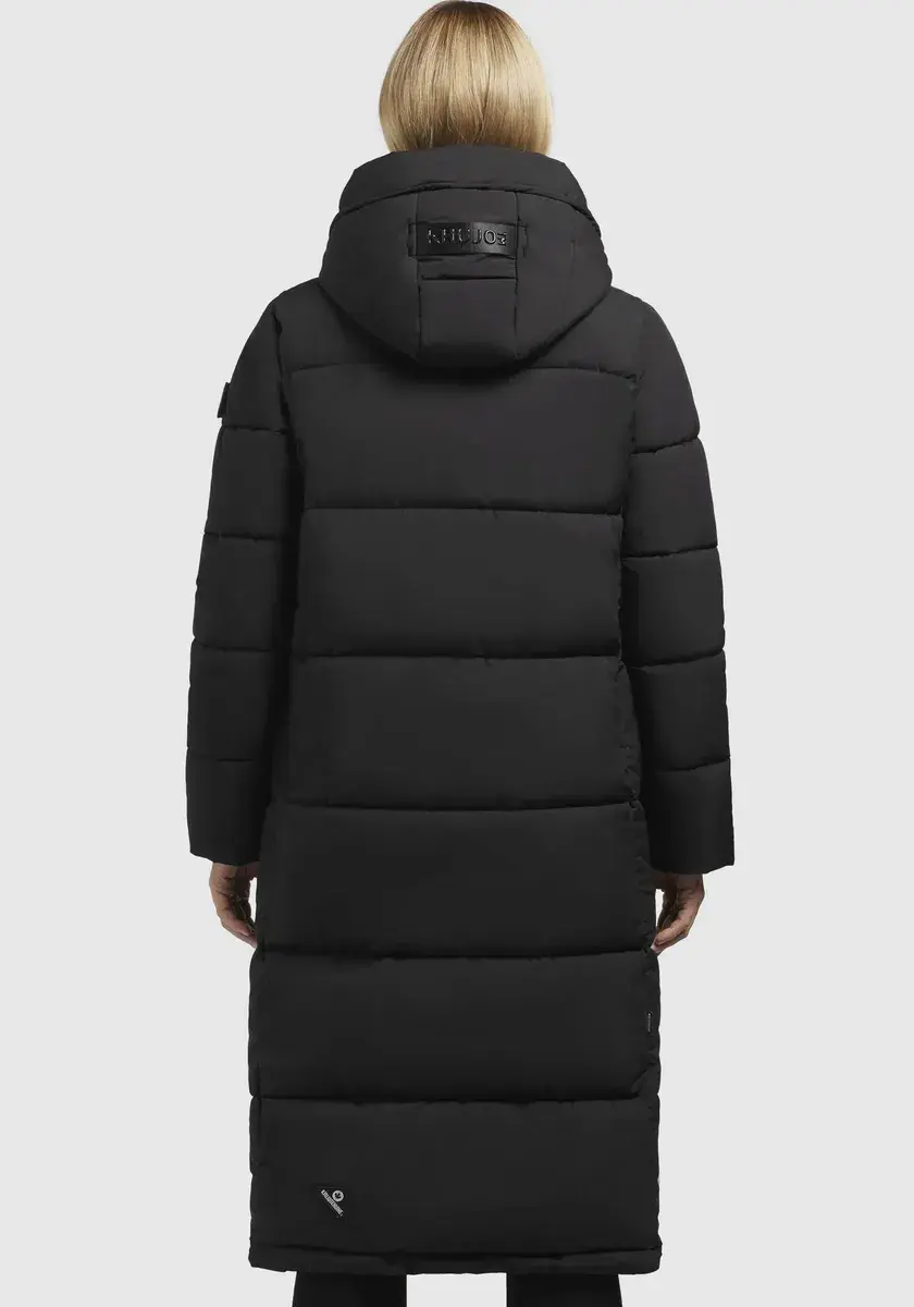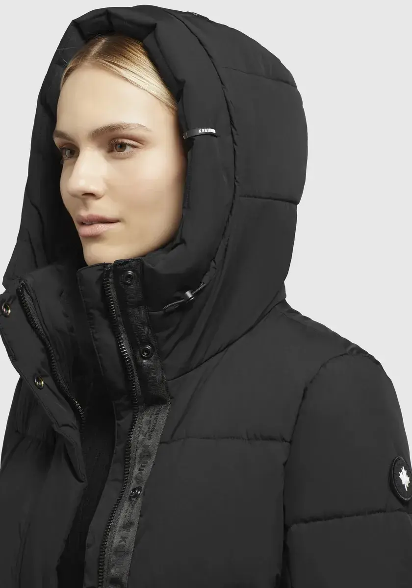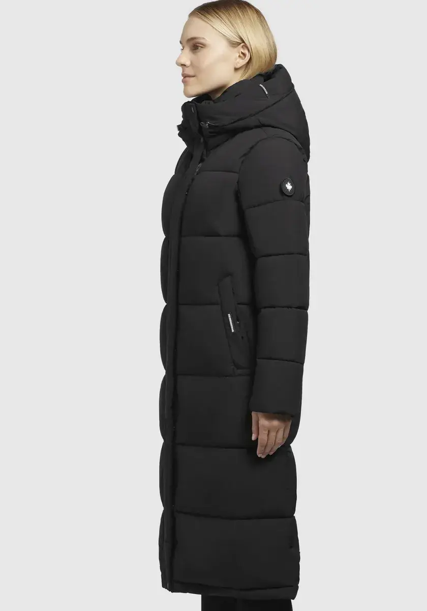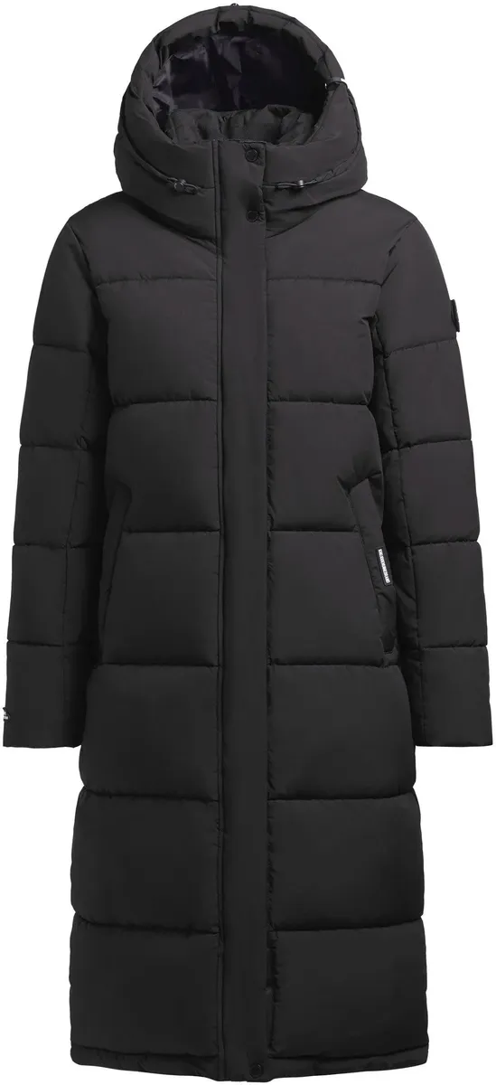 Длинный пуховик >>TIONE Благодаря теплому утеплителю, воротнику-стойке с флисовой вставкой, высокому капюшону и эластичным манжетам на подкладке рукавов пальто бросает вызов морозной зимней погоде. Двусторонняя молния с планкой на кнопках обеспечивает максимальную свободу движений в этом стеганом пальто длиной до колен. Согревающее и простое в уходе стеганое качество. На нашей модели (176 см, 89/61/91) размер S.