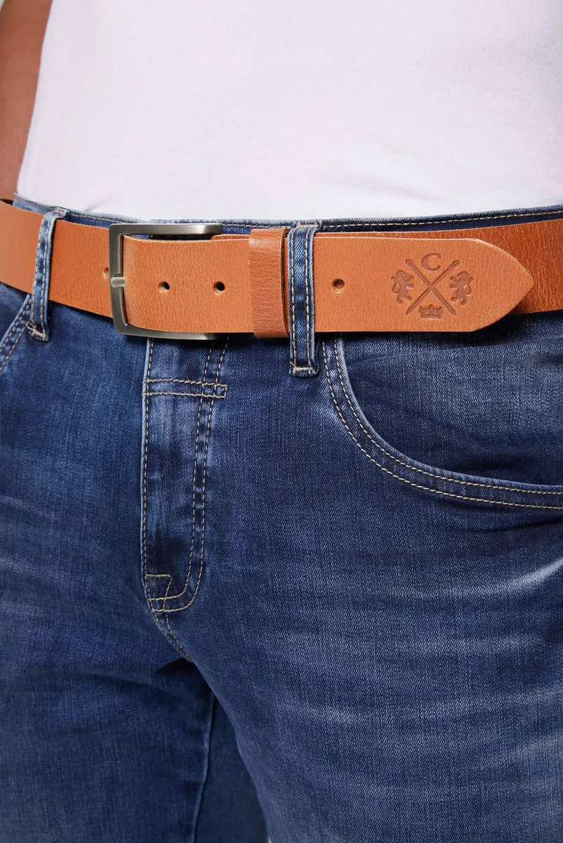 Кожаный ремень CAMP DAVID с тисненым логотипом, коричневый