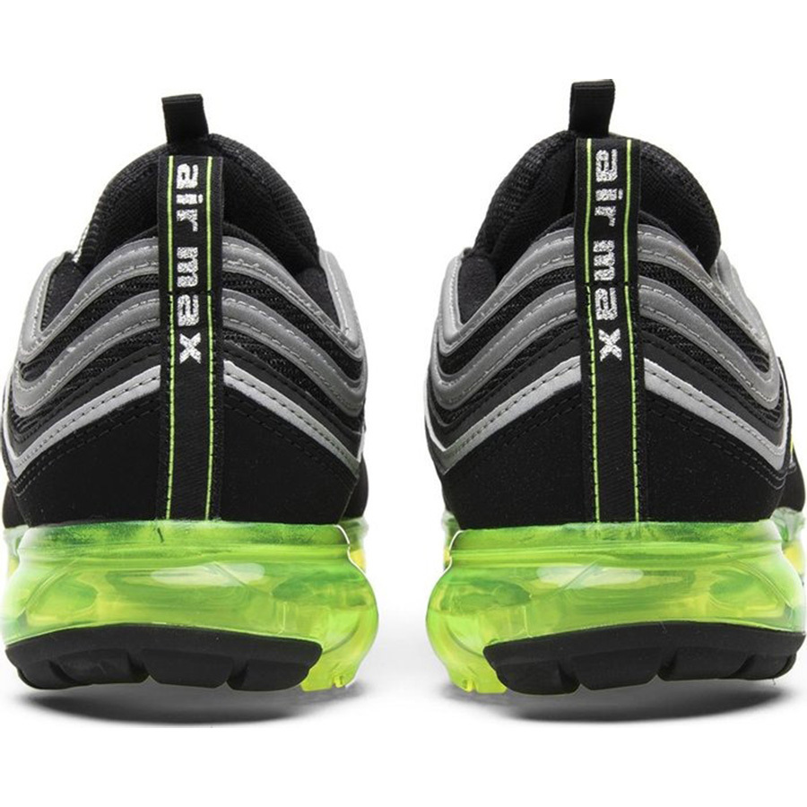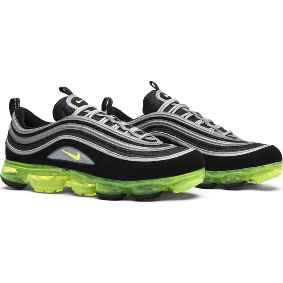 Выпущенные в марте 2018 года Air VaporMax 97 "Neon" сочетают в себе стиль двух любимых моделей Nike - верхнюю часть Air Max 97 и блок Air VaporMax. Уже ставшая культовой классикой Air Max 97, выпущенная в Японии, гладкая черно-серебристая верхняя часть теперь располагается на полупрозрачной неоново-зеленой подошве VaporMax.