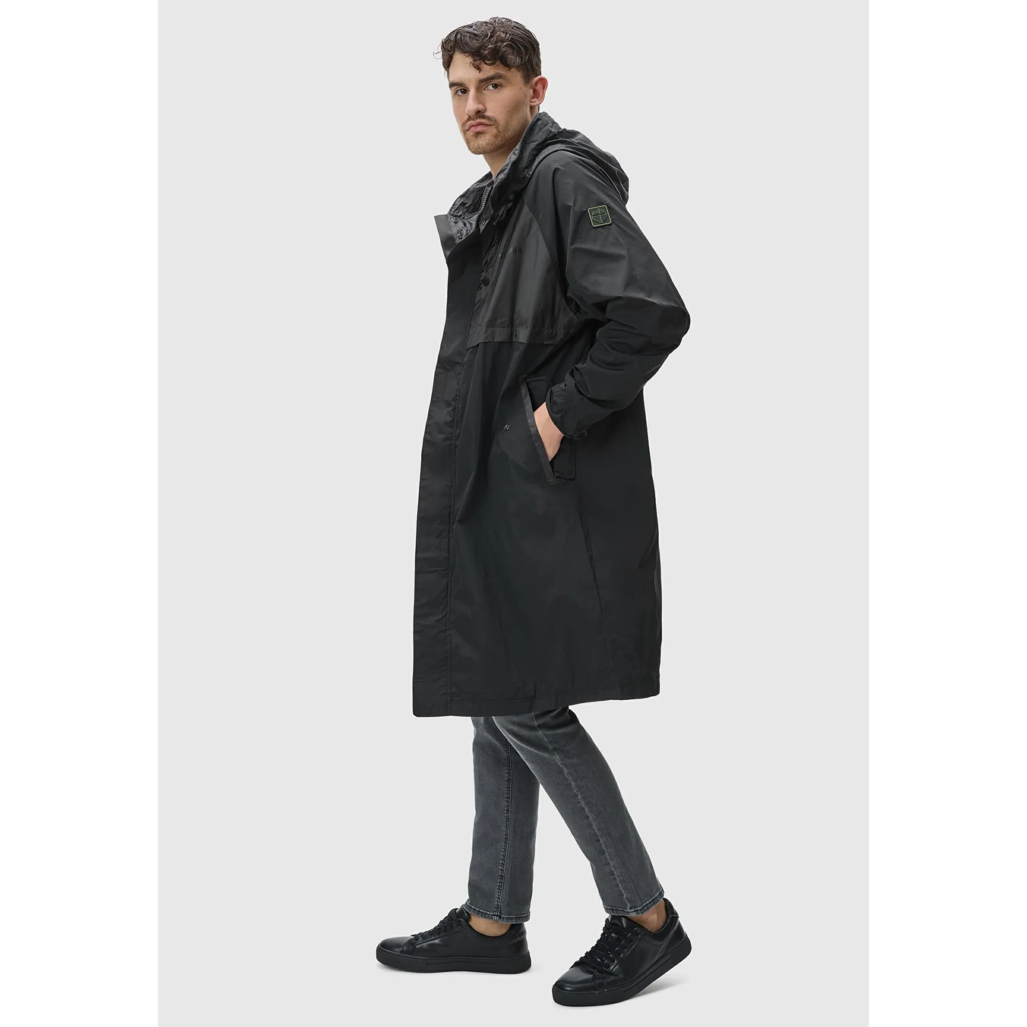 Особенности: Длинная водонепроницаемая мужская куртка-дождевик с капюшоном.