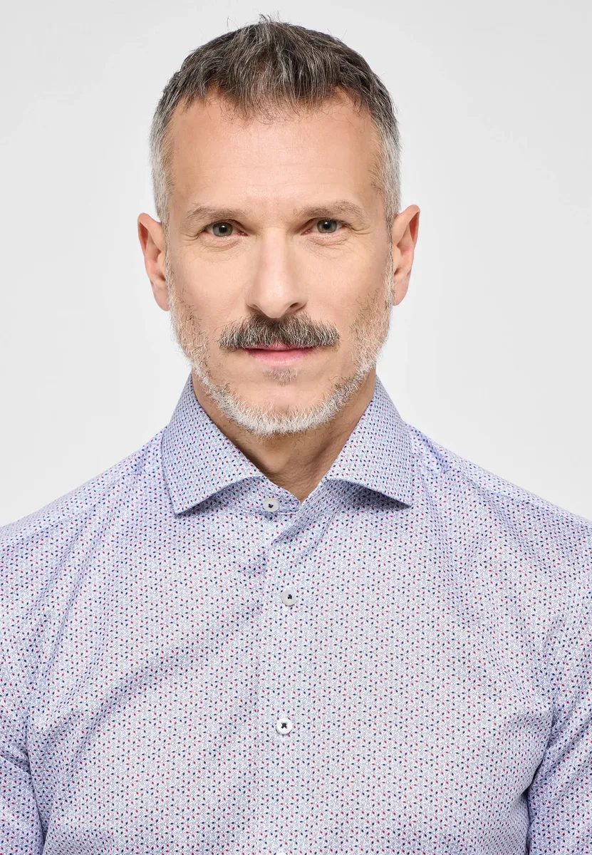 Из нашей премиальной коллекции «1863 by ETERNA»! В этой рубашке SLIM FIT с минимальным принтом вы будете приковывать к себе внимание. Особые качества, хлопчатобумажные ткани с лучшей отделкой, высокое качество изготовления – все эти преимущества объединены в нашей. линия премиум-класса. Эта саржа изготовлена ​​из чистого хлопка без глажки. Это гарантия максимального комфорта при ношении и хорошего самочувствия. Модель имеет воротник-стойку, отсутствие нагрудного кармана и облегающий крой. Особенностью является вшитая декоративная лента спереди. Закажите эту качественную рубашку удобно прямо сейчас!