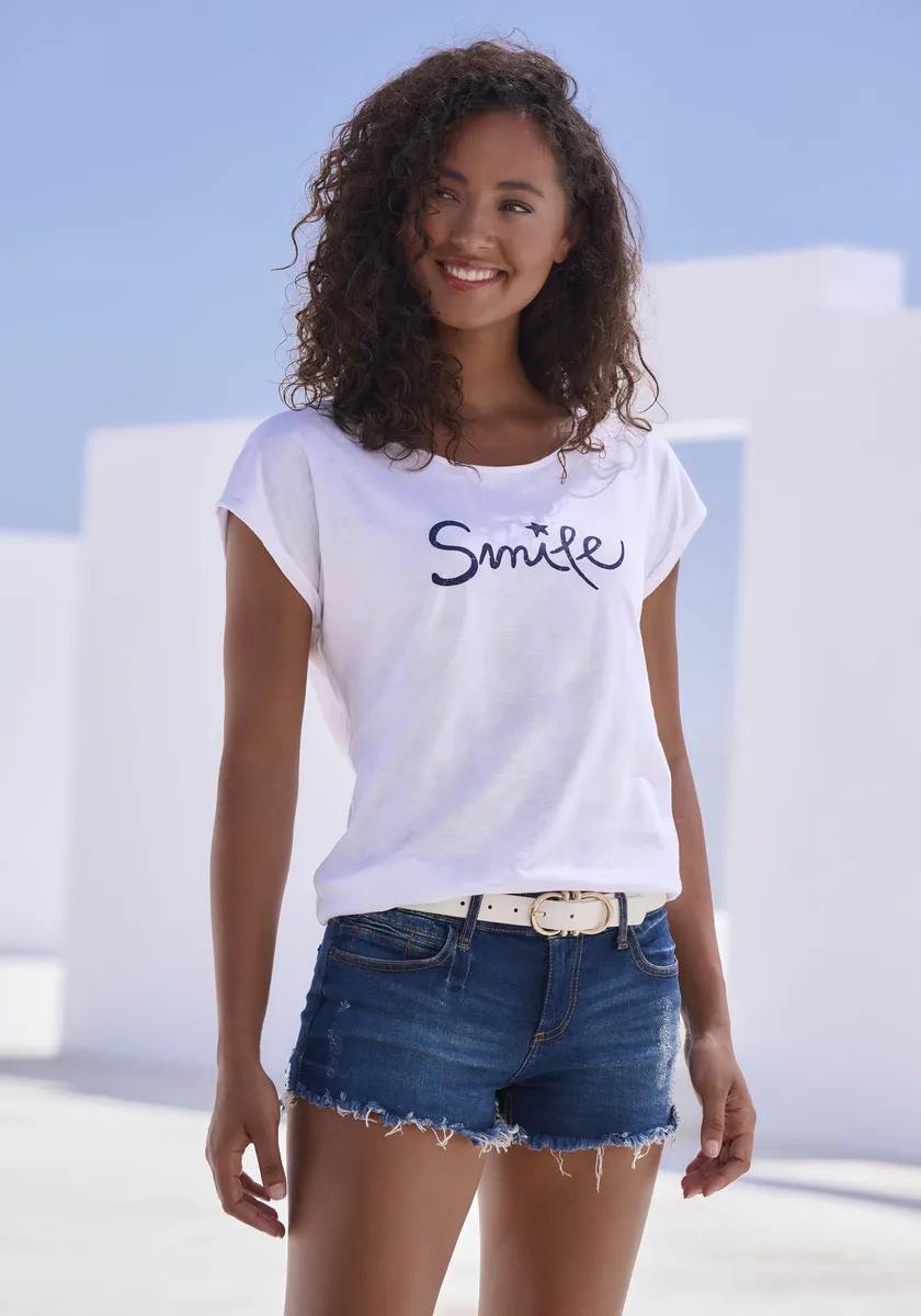 Футболка Beachtime с модным принтом спереди "Улыбка", белый