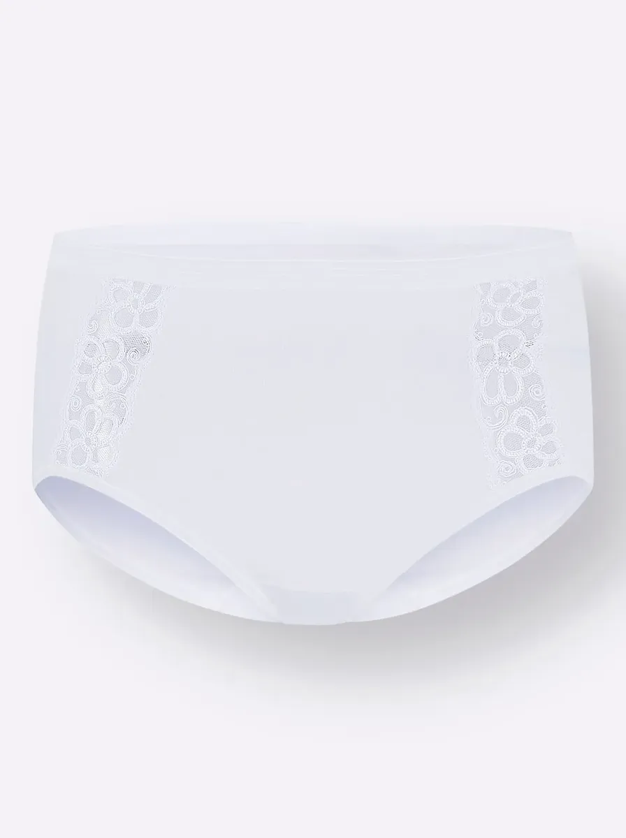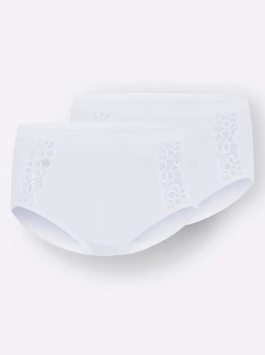В упаковке 2 штуки: трусики на бедрах от Comazo с изящными кружевными вставками по бокам, эластичным блестящим поясом и эластичными манжетами на штанинах. Хлопковая ластовица. Мягкие тонкие ребра. 100% хлопок.