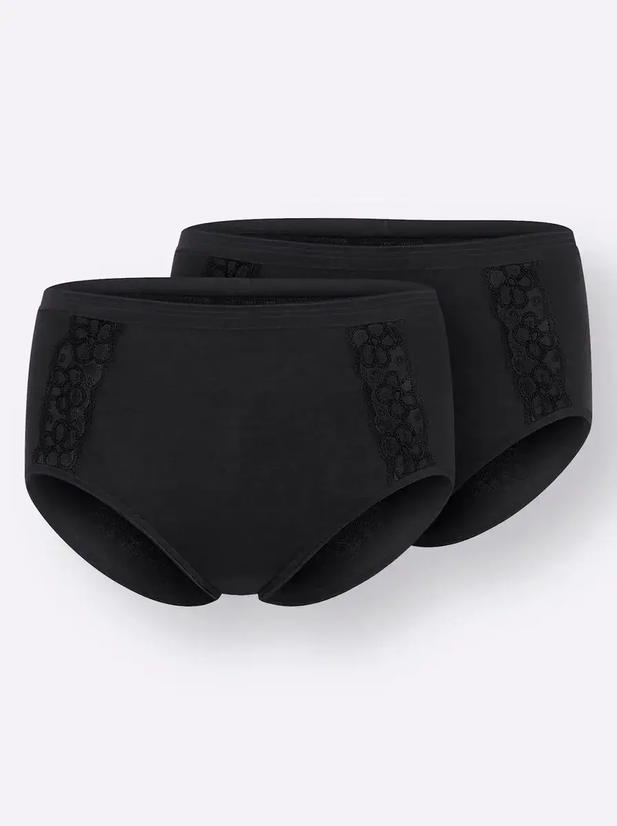 В упаковке 2 штуки: трусики на бедрах от Comazo с изящными кружевными вставками по бокам, эластичным блестящим поясом и эластичными манжетами на штанинах. Хлопковая ластовица. Мягкие тонкие ребра. 100% хлопок.