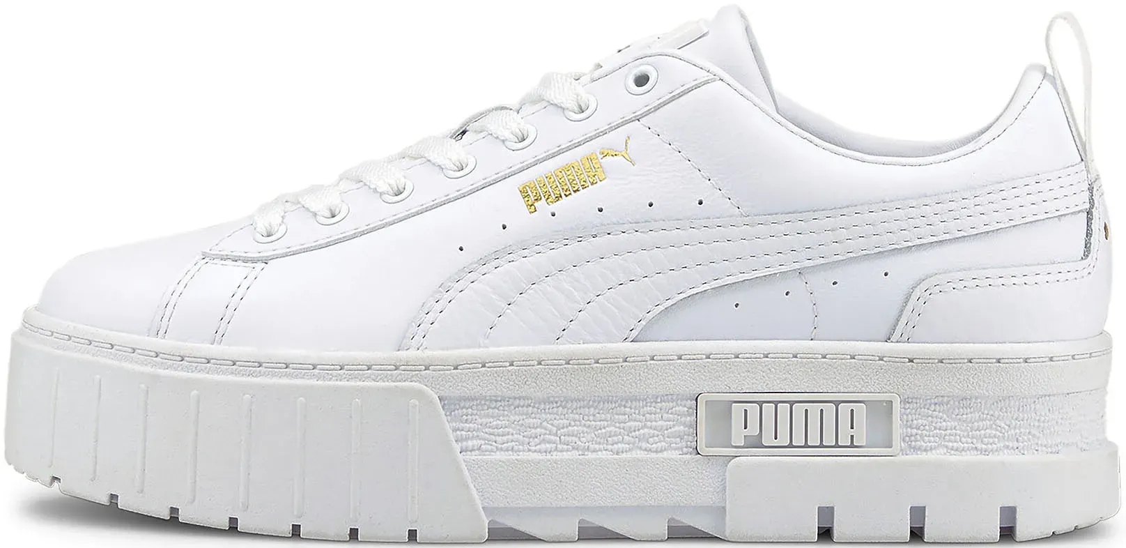 Mayze Classic — это настоящая классика уличного стиля с взрывным сочетанием городского гламура и спортивного шика. Толстая многослойная подошва и верх из натуральной кожи придают этим уличным кроссовкам суровый вид, а тисненая металлическая фурнитура добавляет нотку гламура. Любимые детали, такие как блестящие полированные люверсы и плетеная петля на пятке для удобства надевания и снятия, добавляют завершающий штрих этому модному дизайну.