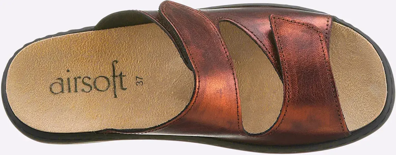 Комфортный внешний вид: туфли-мюли для страйкбола с подушечкой и супинатором. Изготовлен из гладкой кожи, со стелькой из микрофибры. Застежка-липучка, съемная стелька и мягкая амортизация. Подошва из полиуретана, каблук около 40 мм. ширина Х.