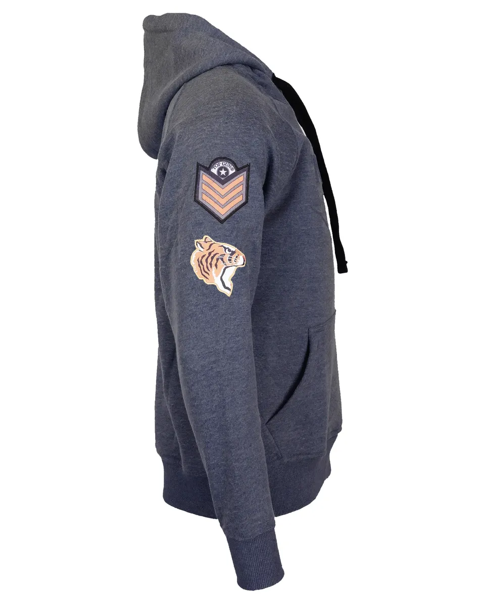 Этот свитер отражает уникальный стиль Top Gun. Модель имеет мягкую подкладку, типичные нашивки на плечах и принт с логотипом в области груди. Эластичный трикотаж на манжетах и ​​поясе обеспечивает идеальную посадку. Большой выдвижной передний карман обеспечивает дополнительное удобство. Свитер также оснащен капюшоном и кулиской. Свитер притягивает взгляды.